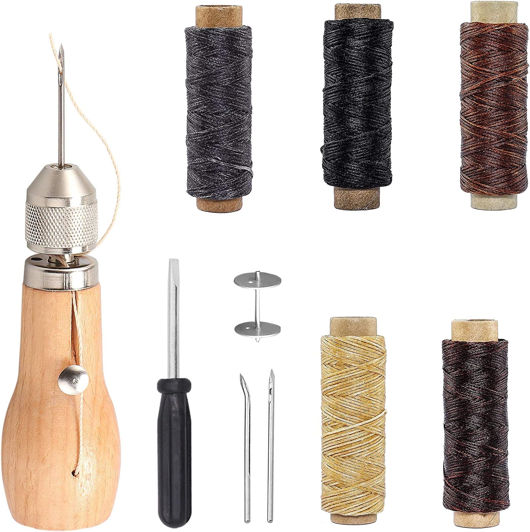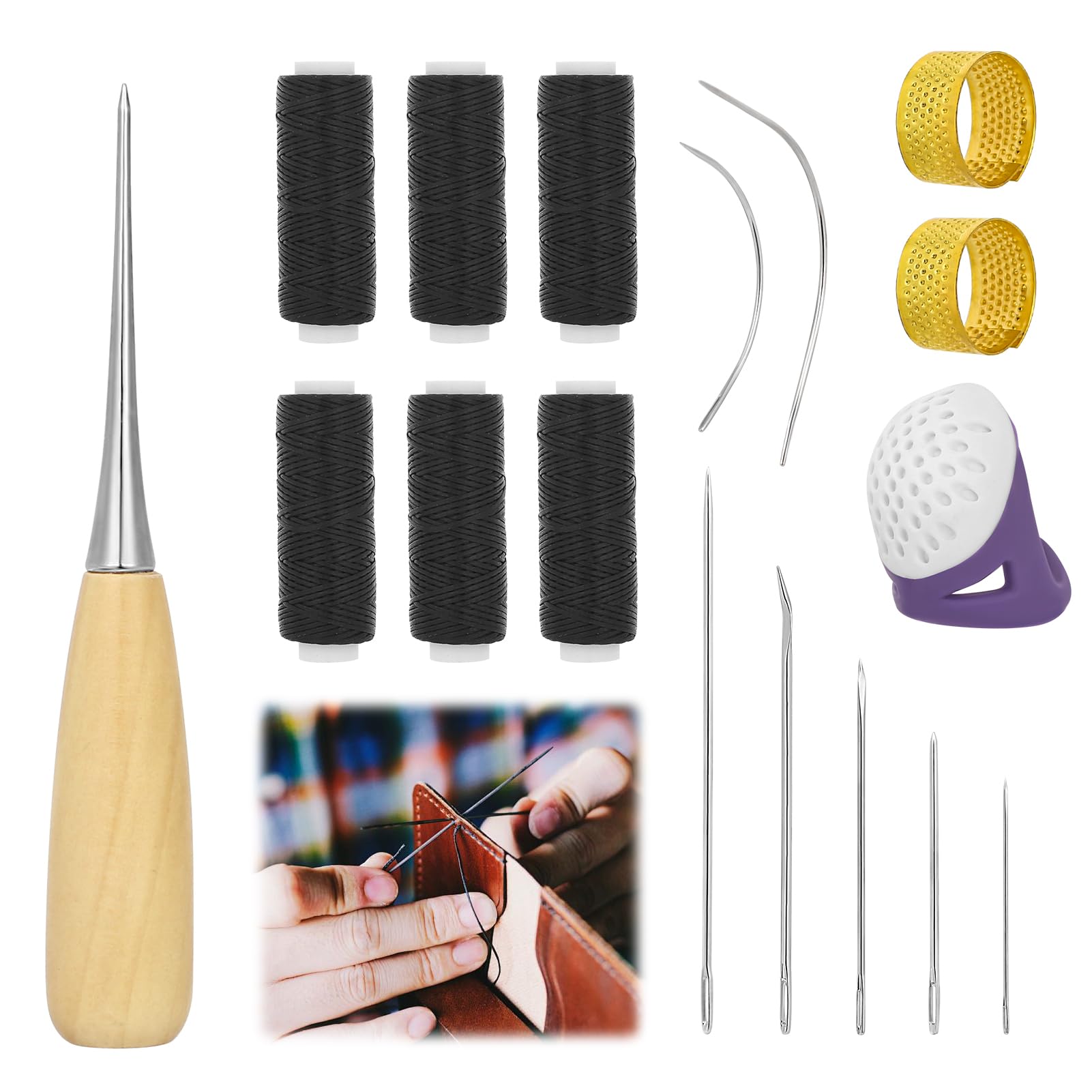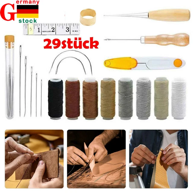 Leder Nähset 10-teilig - Mit Nadeln, Ahle, Faden Und Fingerhut