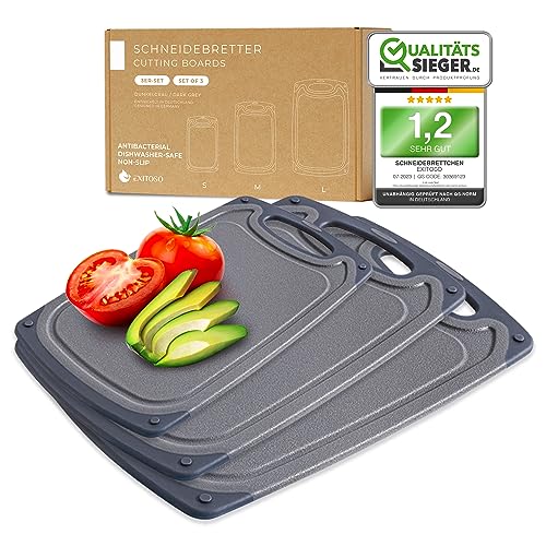 Dieses 4-teilige Schneidebrett-Set in trendiger Marmoroptik ist der Hit für jede Küche! Mit praktischer Saftrille, die Tropfen von Obst, Gemüse oder Fleisch auffängt. Aus dickem, porenfreiem Kunststoff der nicht reißt oder abblättert. BPA-frei und spülmaschinengeeignet für einfache Reinigung. Rutschfeste Gummifüße sorgen für sicheren Halt. Jedes Brett misst 25x15 cm - ideal für die Zubereitung von Mahlzeiten, Snacks oder als Servierbrett. Schützt vor Bakterien und Gerüchen - viel hygienischer als Holz!