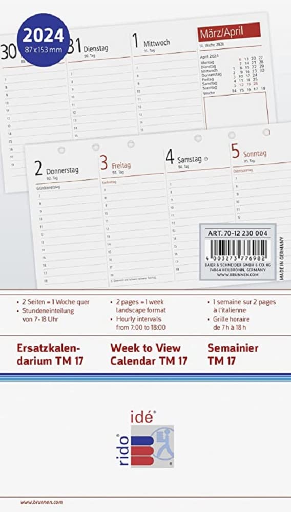 Rido/idé Wochenkalender 2025 - TM15 Ersatzkalendarium 87x153mm Weiß