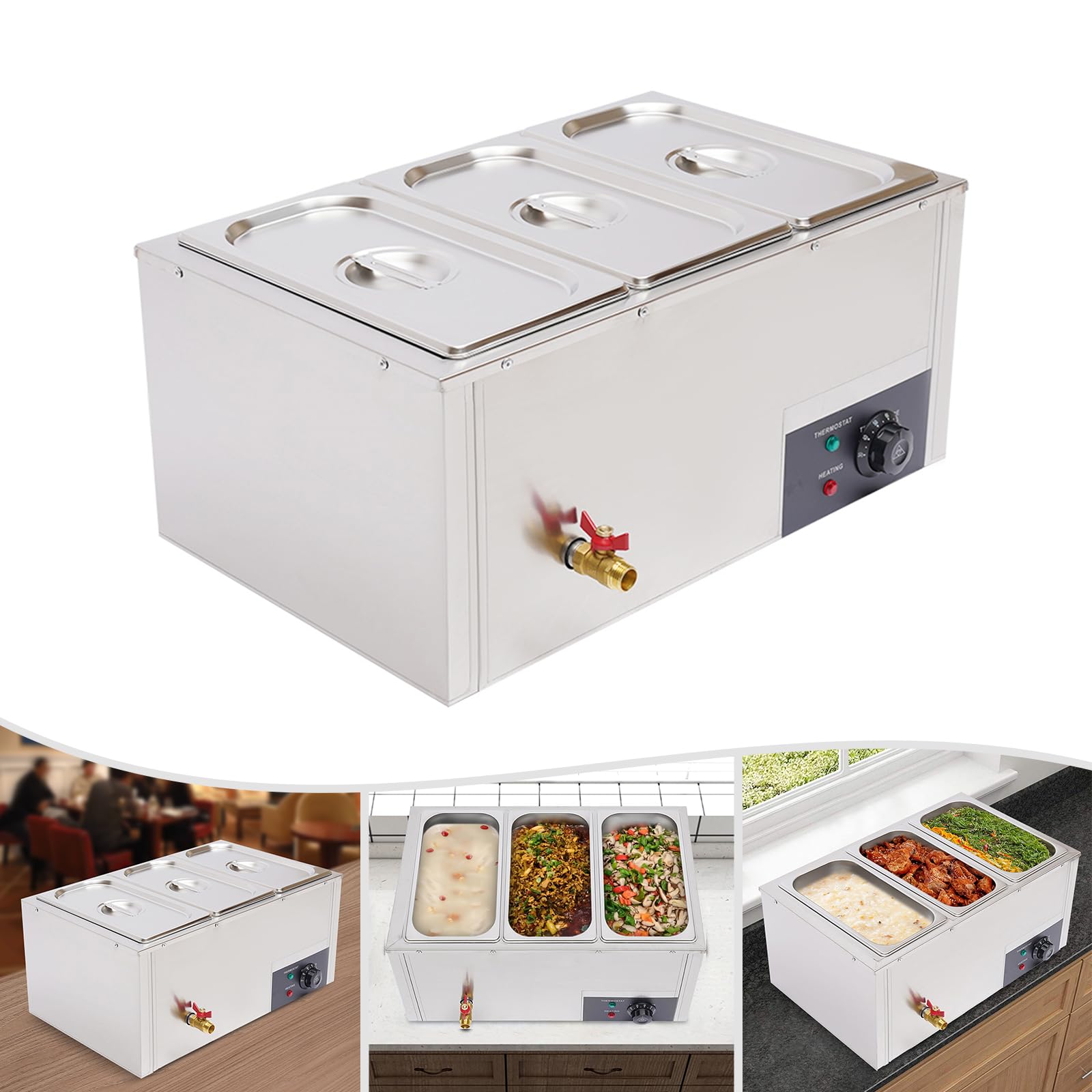 Essen bleibt warm wie frisch gekocht! Dieser praktische 3-in-1 Speisenwärmer aus Edelstahl hält deine Gerichte bei perfekter Temperatur. Mit 3 separaten Fächern (insgesamt 7 Liter) - ideal für verschiedene Speisen. Temperatur von 30-85°C stufenlos einstellbar. Das kubische Heizsystem verteilt die Wärme gleichmäßig. Mit praktischem Wasserablauf und Bedienpanel. Perfekt für Gastronomie, Feiern oder wenn mal Gäste kommen. Dein Essen bleibt warm und lecker - ohne dass es anbrennt oder austrocknet!