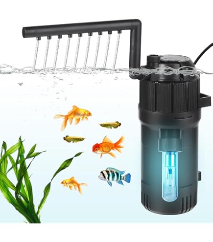 Der Alleskönner für dein Aquarium! Dieser 5-in-1 Filter vereint alles, was du für klares, gesundes Wasser brauchst: Belüftung, Regendusche, Wellenbildung, Springbrunnen und Wasseraustausch in einem Gerät! \\n\\nMit 211 GPH (Gallonen pro Stunde) Leistung macht er selbst 40-Gallon-Becken 5x pro Stunde sauber. Der 15W Motor arbeitet super leise - kaum hörbar! \\n\\nDreistufige Filtration: Biochemischer Schwamm, Aktivkohle und Biokugeln entfernen Schmutz, Gerüche und schädliche Stoffe. Deine Fische werden es dir danken! \\n\\nEinstellbarer Durchfluss - passe die Strömung genau an die Bedürfnisse deiner Fische an. Ob sanfte Bewegung oder stärkere Strömung - alles möglich. \\n\\nEinfache Installation mit 4 starken Saugnäpfen - hält sicher an der Aquariumscheibe. Abmessungen: 2,4x2,0x11,2 Zohn - kompakt aber leistungsstark. \\n\\nGeeignet für 35-45 Gallon Süß- und Salzwasserbecken, auch für Schildkröten. USB-Anschluss mit 5V Adapter - einfach anzuschließen. \\n\\nReinigung alle 1-2 Wochen empfohlen - einfach auseinandernehmen, säubern und wieder einsetzen. Einfacher geht's nicht! \\n\\nFür kristallklares Wasser und gesunde, glückliche Fische. Einfach einschalten und sich über die professionelle Filterleistung freuen!