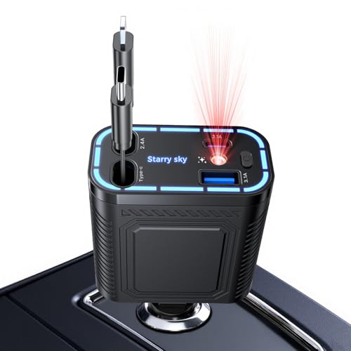 Nie wieder Kabelsalat im Auto! Dieses 4-in-1 Ladegerät hat alles integriert: ausziehbares USB-C Kabel (30W PD3.0), ausziehbares iPhone Kabel (12W), plus feste USB-C (15W) und USB-A (12W) Anschlüsse. Bis zu 69W Gesamtleistung - lade gleichzeitig 4 Geräte! Mit PD3.0 Schnellladung: dein Smartphone in 30 Minuten auf 80%. Super kompaktes Design, 50% kleiner als normale Ladegeräte. Integrierte Sicherheitschips schützen vor Überhitzung und Überspannung. Mit praktischer Spannungsanzeige. Perfekt für iPhone, Samsung, Huawei und mehr. Einfach Kabel ausziehen, aufladen, zurückziehen - null Chaos! Dein perfekter Begleiter für jede Autofahrt.