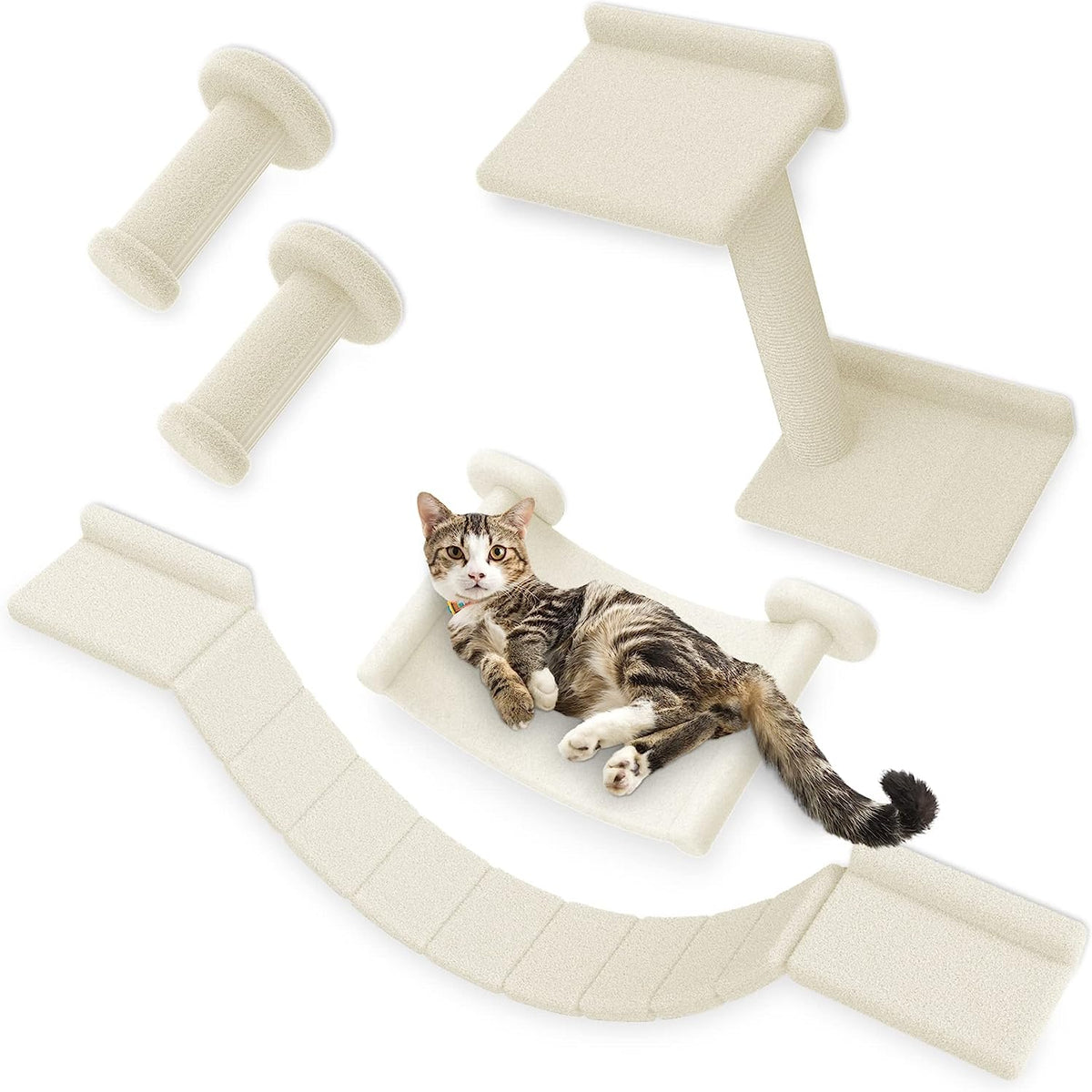 Modulare Katzen Kletterwand - 5-in-1 Set Aus Birkenholz Mit Katzenbett