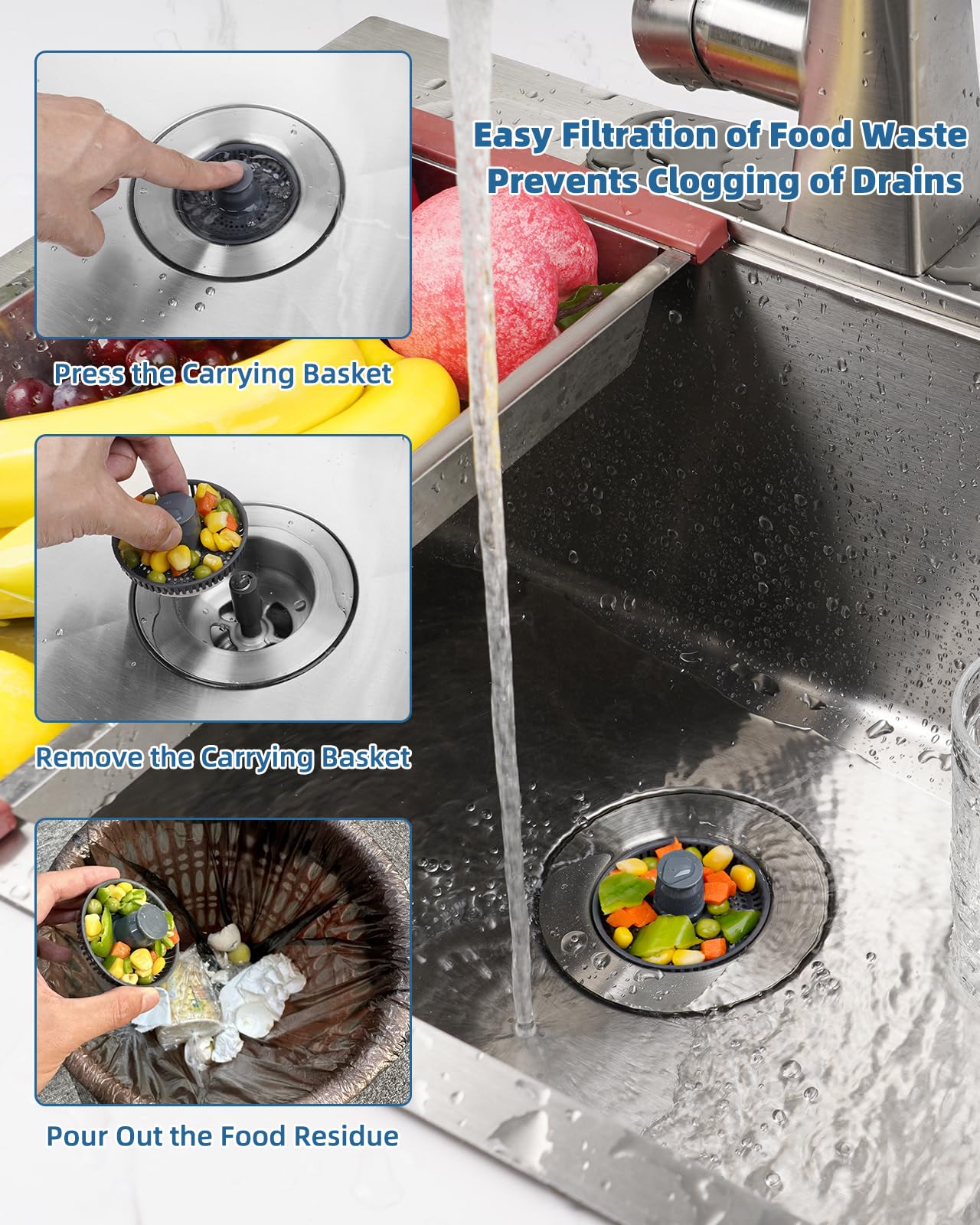 Ist dein Spülbeckenstöpsel kaputt? Dieser 3-in-1 Stöpsel ist die All-in-One-Lösung! Als Stöpsel, Sieb und Abfallkorb in einem. Passt für Abflusslöcher von 72-86mm Durchmesser und mindestens 28mm Tiefe. Aus ABS-Kunststoff mit Edelstahl-Ummantelung - rostfrei und langlebig. Mit Dichtring für perfekten Verschluss. Verstopfungen waren gestern - das Sieb fängt alles ab! Einfach zu reinigen und zu installieren. Macht deine Spüle wieder komplett! Einfach einsetzen und Küchenfrust ade sagen!