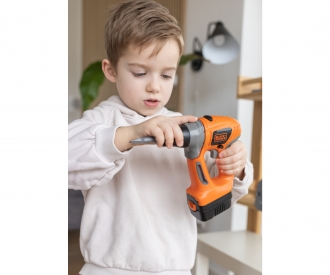Das Smoby Black+Decker eVo Spielwerkzeug ist der absolute Hit für kleine Nachwuchshandwerker! Dieses authentische 4-in-1-Werkzeug sieht genauso aus wie das große Vorbild und bringt alles mit, was kleine Handwerkerherzen höher schlagen lässt: Schlitz- und Kreuzschlitzschraubenzieher, Bohrer, Schleifscheibe und Stichsäge. Die Aufsätze lassen sich kinderleicht wechseln, und mit dem Schalter für Rechts- oder Linkslauf können die Kleinen sogar richtige Schraubrichtung ausprobieren! Das Batteriegehäuse ist abnehmbar (2x AA-Batterien inklusive), und der gummiere Griff liegt auch in kleinen Händen perfekt. Mit den Maßen 20x5x17,5 cm ist das Werkzeug ideal für Kinder ab 3 Jahren geeignet. So lernen die Kleinen spielerisch den Umgang mit Werkzeugen und haben dabei jede Menge Spaß - ein pädagogisch wertvolles Spielzeug, das Kreativität und motorische Fähigkeiten fördert!