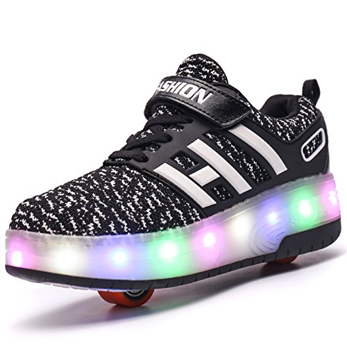 Surwin Rollschuhe Kinder - 2-in-1 Sportschuhe Mit Versteckten Rollen Leopard Print