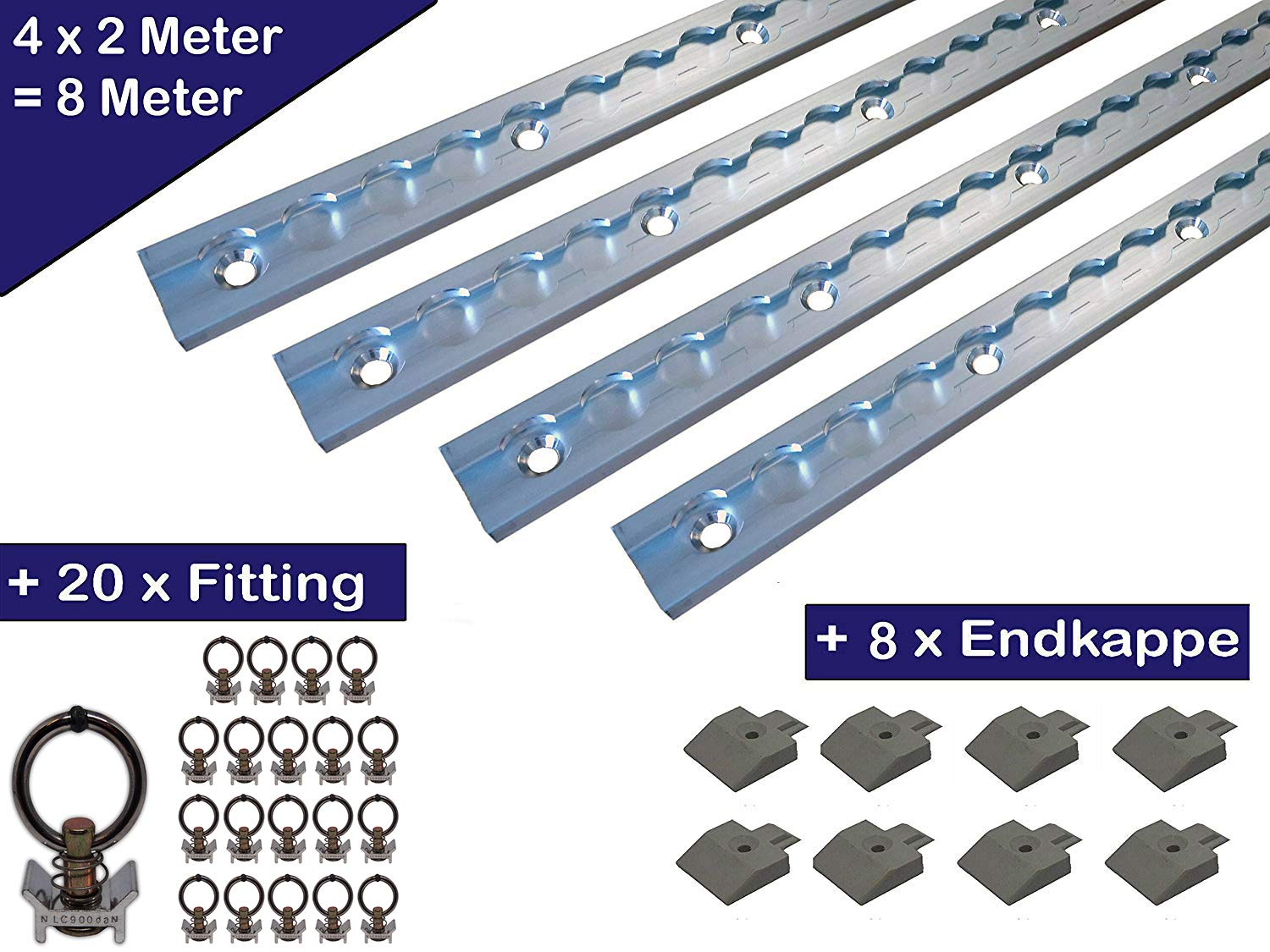 NTG Alu Airlineschienen Set - 2x2 Meter, Halbrund Mit Zubehör Für Ladungssicherung