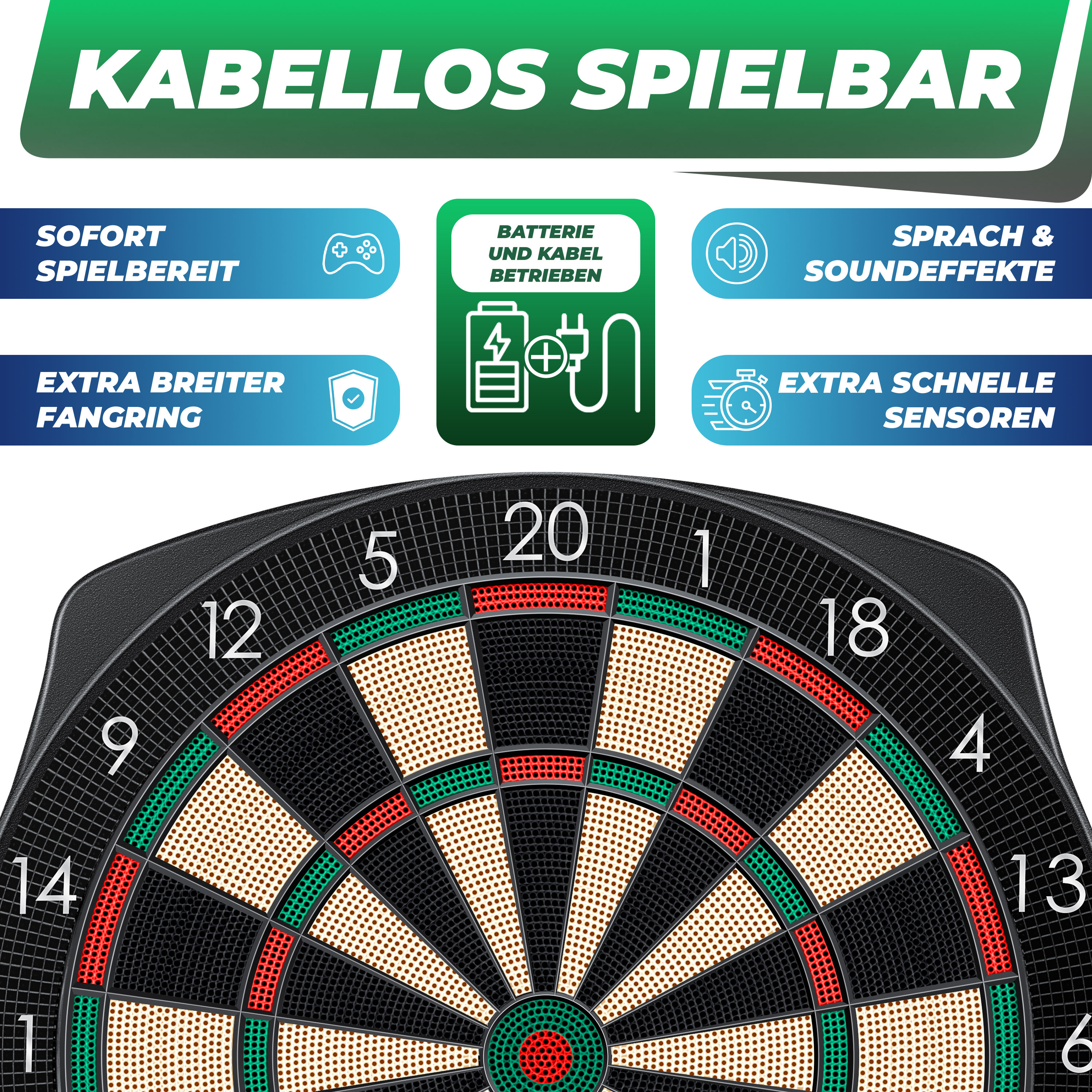 Elektronische Soft-Dartscheibe 38,1cm - 6 Darts Mit LCD-Anzeige - 159 Spielmodi Für Bis Zu 8 Spieler