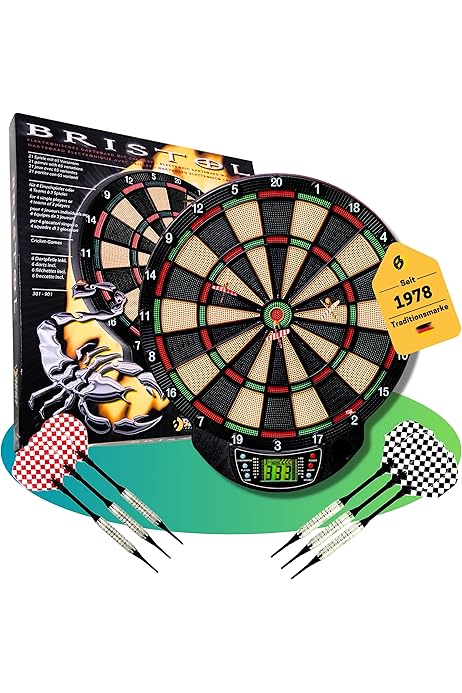 Dart-Spaß für die ganze Familie! Diese elektronische Soft-Dartscheibe mit 38,1cm Durchmesser bietet 159 verschiedene Spielmodi - von 301 über 501 bis 21 Punkte. Für bis zu 8 Spieler gleichzeitig perfekt für Partys! Automatische Punktezählung auf dem LCD-Display - kein Rechnen nötig. Inklusive 6 Soft-Darts mit Ersatzspitzen. 30 Minuten Auto-Off spart Batterien. Einfache Montage mit detaillierter Anleitung für die richtige Höhe und Entfernung. Sicher für Kinder - die Darts sind ungefährlich. Perfekt für Wohnzimmer, Keller oder Partyraum. Mach deine nächste Feier unvergesslich mit diesem professionellen Dart-Set! Einfach aufhängen und losspielen - der Spaß beginnt sofort!