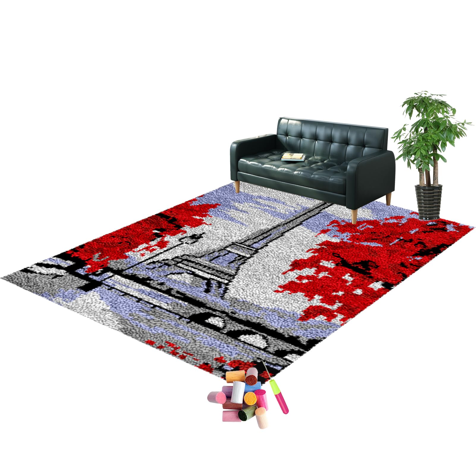 Wenn der Teppich fertig ist, kannst du ihn überall verwenden: Als Teppich fürs Wohnzimmer, Badezimmer, als Sofa-Unterlage oder sogar als Wanddekoration. Das Acrylgarn ist geruchlos, megaweich und bequem. Im Set ist alles dabei: bedrucktes Augenstuch, englische Anleitung, Garn und Hakennadel. Perfekt als Geschenk oder um mal richtig abzuschalten!