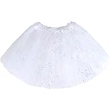Damen Tutu Rock 4-lagig Mit Glitzer - Elastische Taille 60-120cm, 40cm Länge, Karneval Kostüm