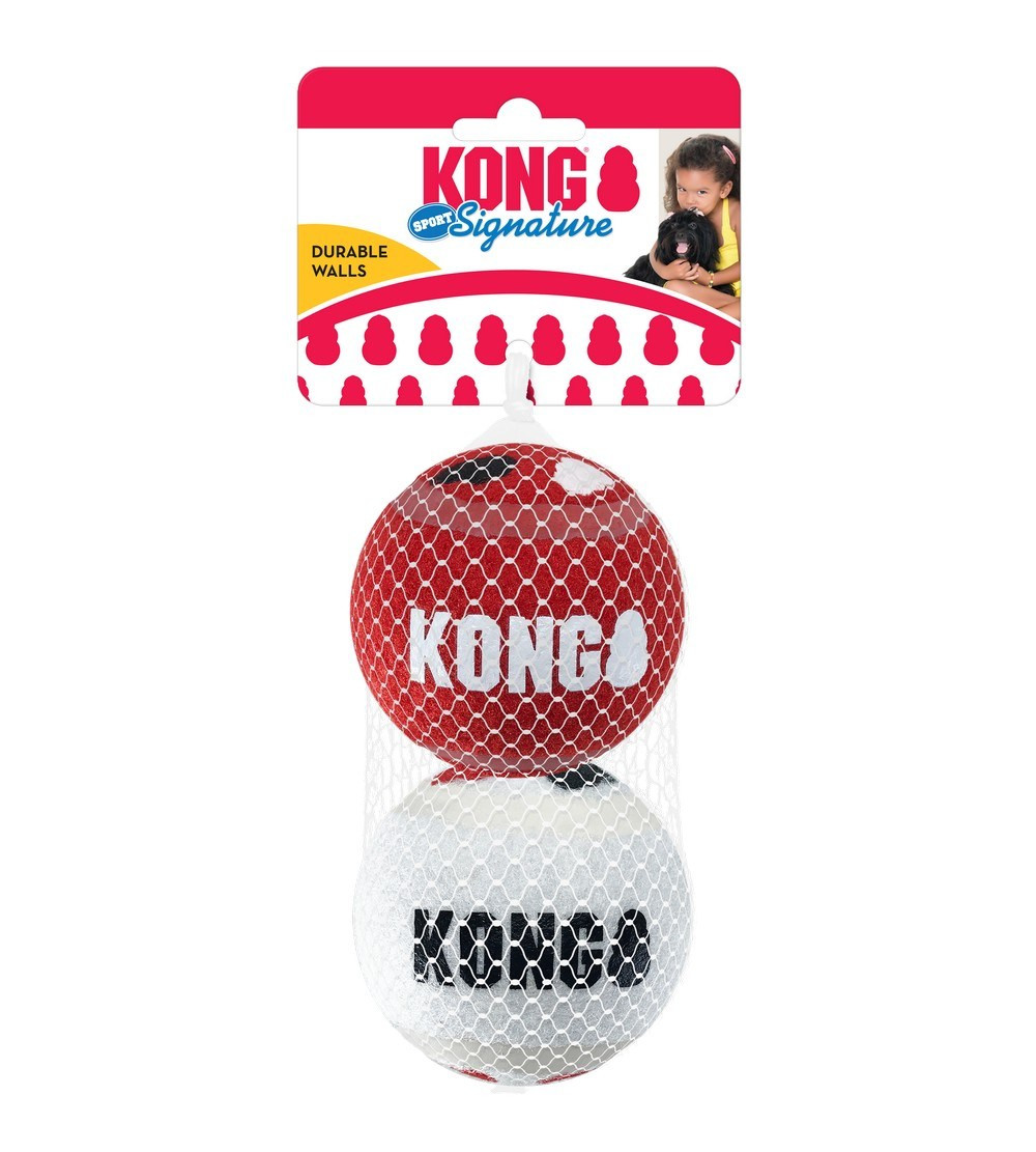 KONG Signature Bälle 2er Set Größe S - Robustes Hundespielzeug In Rot