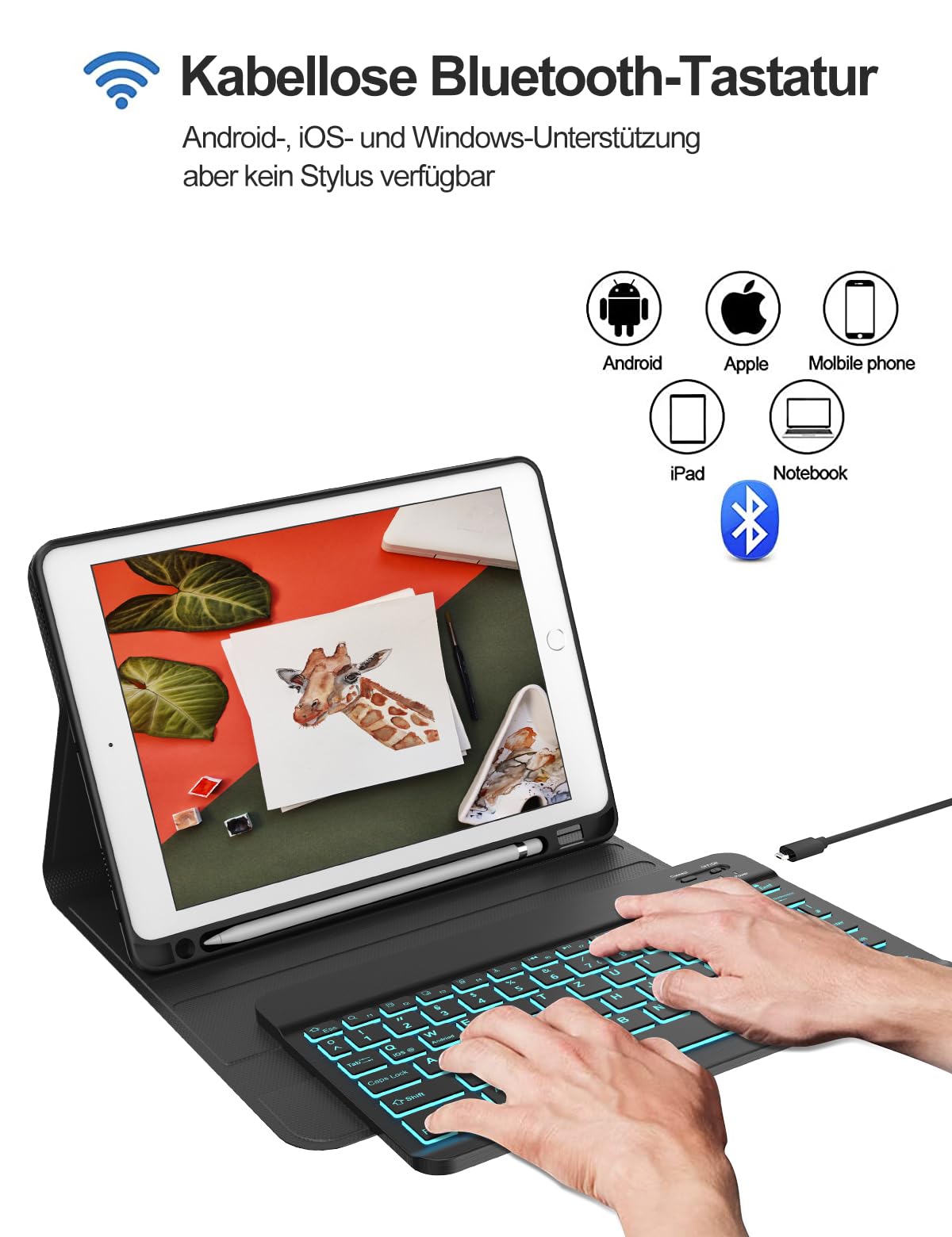 Hey, diese KVTVOU Tastatur Hülle ist genau das Richtige für dein iPad! Perfekt für die 9., 8. und 7. Generation mit 10,2 Zoll Display. Die Hülle sieht nicht nur super aus in Rosa, sondern ist auch mega praktisch. Die Tastatur ist magnetisch abnehmbar - einfach dranklipsen und loslegen. Bluetooth-Verbindung heißt: kabellos und frei! Besonders cool: Der integrierte Stifthalter, damit dein Apple Pencil immer sicher verstaut ist. Die Tastatur ist superflach (nur 7mm!) und hat ne richtig lange Akkulaufzeit. Mit USB-C lädst du sie schnell mal auf und hast dann ewig Ruhe. Drei verschiedene Neigungswinkel (110°-130°) sorgen für die perfekte Sicht beim Arbeiten oder Streamen. Ob für die Uni, im Homeoffice oder unterwegs - damit machst du nichts falsch! Kompatibel mit: iPad 9. Gen (2021) Modelle A2602-A2605, iPad 8. Gen (2020) A2270-A2430, iPad 7. Gen (2019) A2197-A2200. Lieferung inklusive Hülle, Tastatur, USB-C Kabel und Anleitung. Einfach auspacken und sofort nutzen!