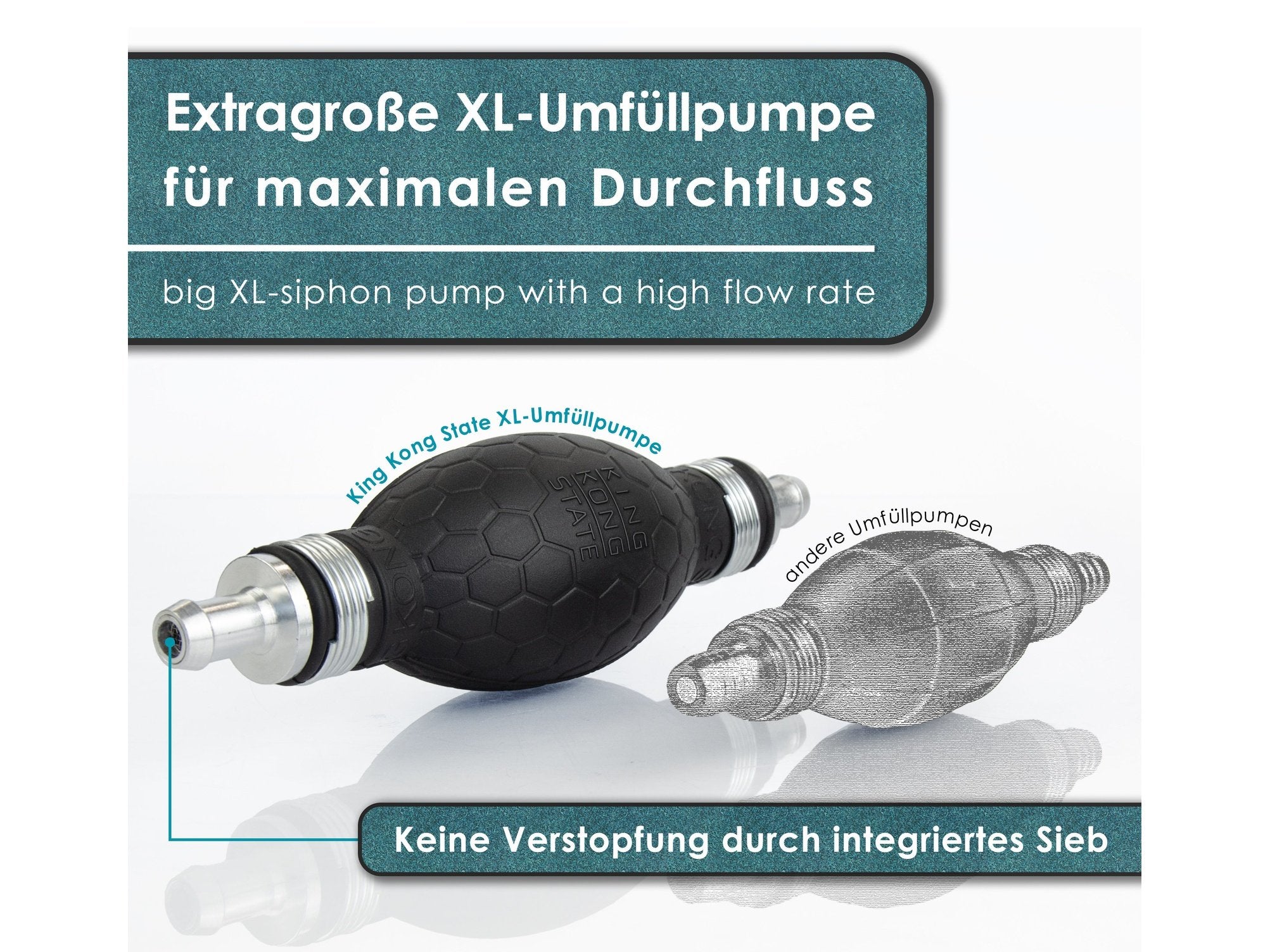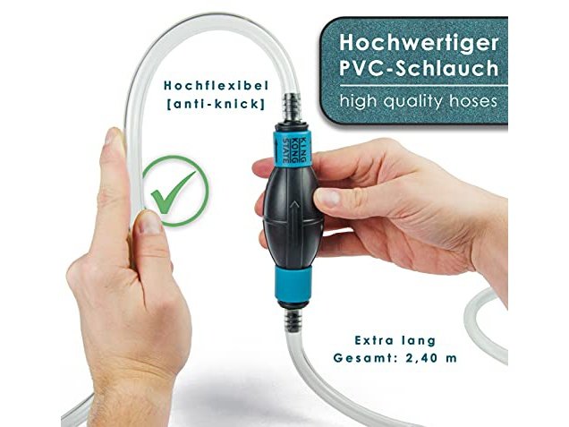 Diese Handpumpe ist ein echter Alleskönner! Damit kannst du ganz ohne Strom Wasser, Benzin, Diesel oder Öl umfüllen. Mit 2,5m langem PVC-Schlauch - reicht für die meisten Aufgaben. Einfach den Gummiball mehrmals drücken und schon fließt die Flüssigkeit. Der drehbare Durchflussregler gibt dir volle Kontrolle über die Menge. Komplett mit Schlauchklemmen für dichte Verbindungen und Stopfen. Super für Auto, Boot, Garten oder Werkstatt. Kein Herumgeschleppe mit schweren Kanistern mehr! Einfach zusammenschrauben und lospumpen - praktischer geht's nicht.