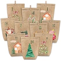 Mach die Adventszeit zu etwas Besonderem mit diesem DIY-Adventskalender! Das Set enthält 24 wunderschöne Papiertüten in 16x6x22cm, 24 Klammern zum Aufhängen und 24 goldene Zahlenaufkleber von 1 bis 24. Du kannst die Tüten ganz nach deinen Wünschen befüllen - mit Süßigkeiten, kleinen Geschenken, Gutscheinen oder lieben Nachrichten. Die verschiedenen Weihnachtsmotive auf den Tüten sehen einfach bezaubernd aus. Mit etwas Tannengrün, Deko-Band oder Weihnachtskugeln wird der Kalender zu einem echten Hingucker in deinem Zuhause. Egal ob für Kinder, Partner, Freunde oder die ganze Familie - dieser persönliche Adventskalender bringt jeden Tag eine kleine Freude. Die braunen, amarantfarbenen und grünen Tüten passen perfekt zur Weihnachtsdekoration. Ein tolles Geschenk für alle Weihnachtsfans und eine schöne Tradition, die jedes Jahr wieder Freude macht. Lass deiner Kreativität freien Lauf und gestalte deinen ganz persönlichen Countdown bis Weihnachten!