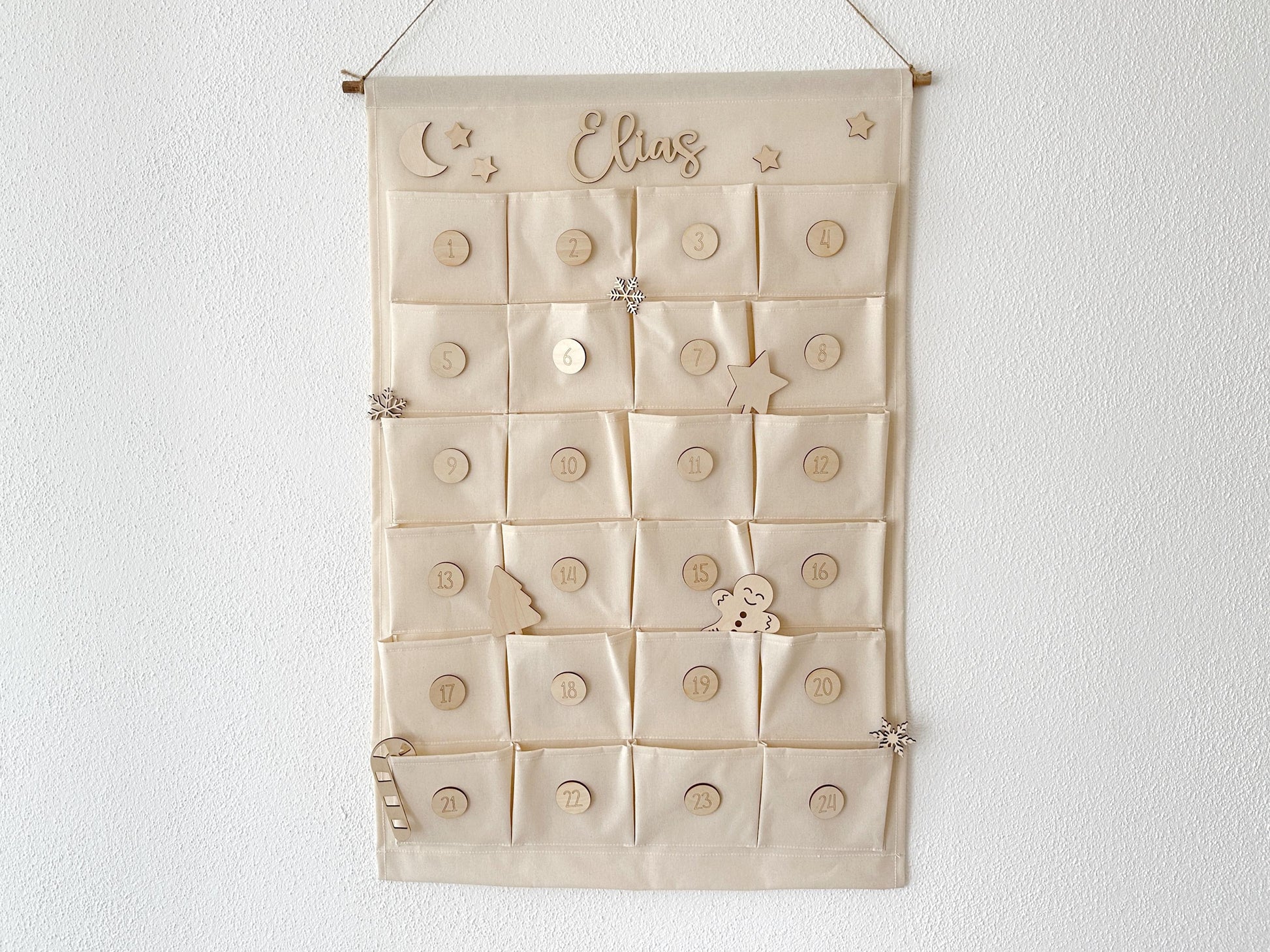 Adventskalender Zum Befüllen - 24 Stoffbeutel Mit Holznummern