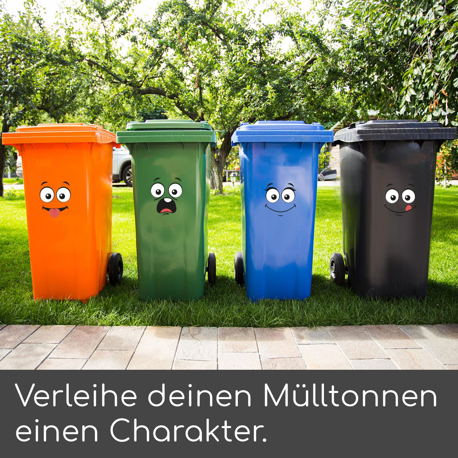 4 Mülltonnen Gesichts-Aufkleber Set - Wasserfest & Selbstklebend