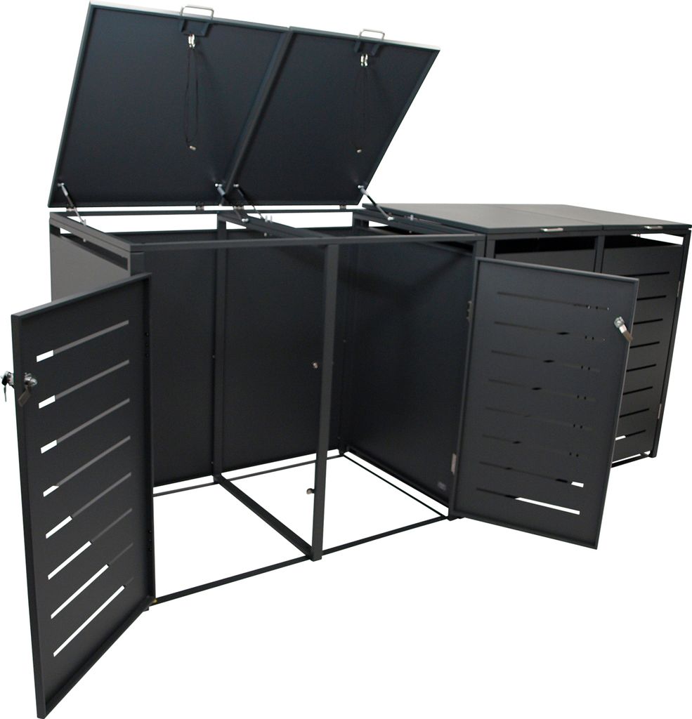 DEGAMO Mülltonnenbox Kiel Für 2x120/240L - Anthrazit, Edelstahl & Stahl 139x83x136cm