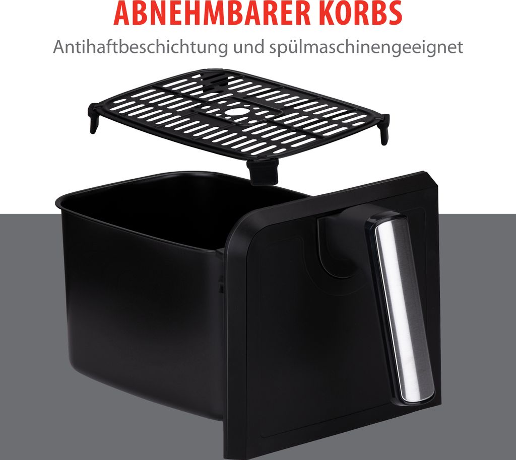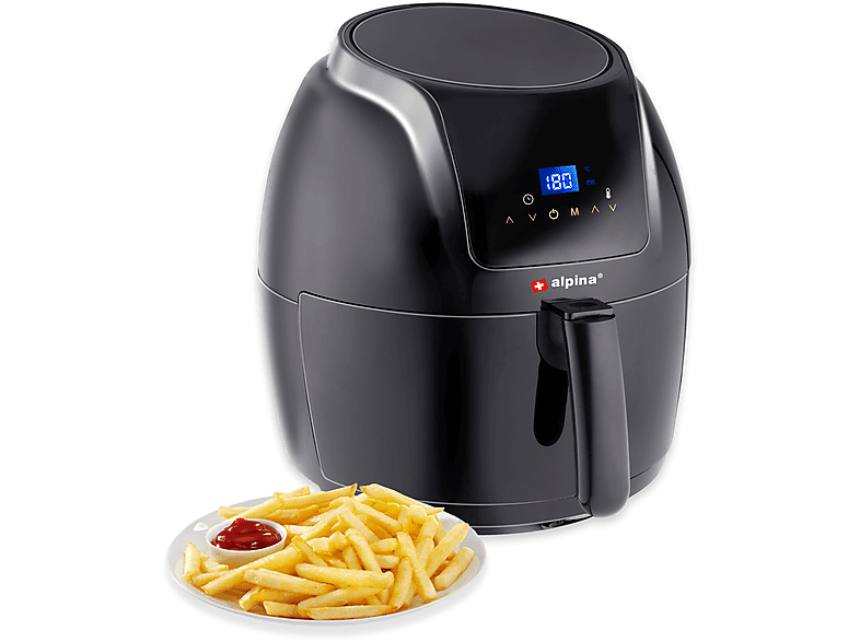 Klein aber oho! Die Alpina Heißluftfritteuse mit 2 Litern Fassungsvermögen ist perfekt für Singles, Paare oder kleine Familien. Endlich kannst du deine Lieblingssnacks ohne schlechtes Gewissen genießen - ganz ohne Öl! Die Antihaft-Beschichtung im Inneren macht die Reinigung zum Kinderspiel. Einfach den Timer auf bis zu 60 Minuten einstellen und die Temperatur zwischen 80 und 200°C regulieren - so gelingen Pommes, Hähnchen und Gemüse immer perfekt! Besonders praktisch: Du kannst die Fritteuse auch als Mini-Backofen verwenden. Muffins, Pizza oder Aufläufe - alles wird knusprig und lecker, nur eben viel schneller als im großen Ofen! Perfekt für Studentenwohnheime, kleine Küchen oder wenn's mal schnell gehen muss. Der herausnehmbare Korb lässt sich ganz easy reinigen. Kein lästiges Fett mehr in der Küche, kein ungesundes Transfett in deinem Essen! Das schwarze Design sieht modern aus und passt in jede Küche. Einfach Stecker rein und nach wenigen Minuten hast du eine leckere, gesunde Mahlzeit auf dem Tisch. Ideal für Berufstätige, die abends noch was Leckeres kochen wollen, ohne stundenlang in der Küche zu stehen!