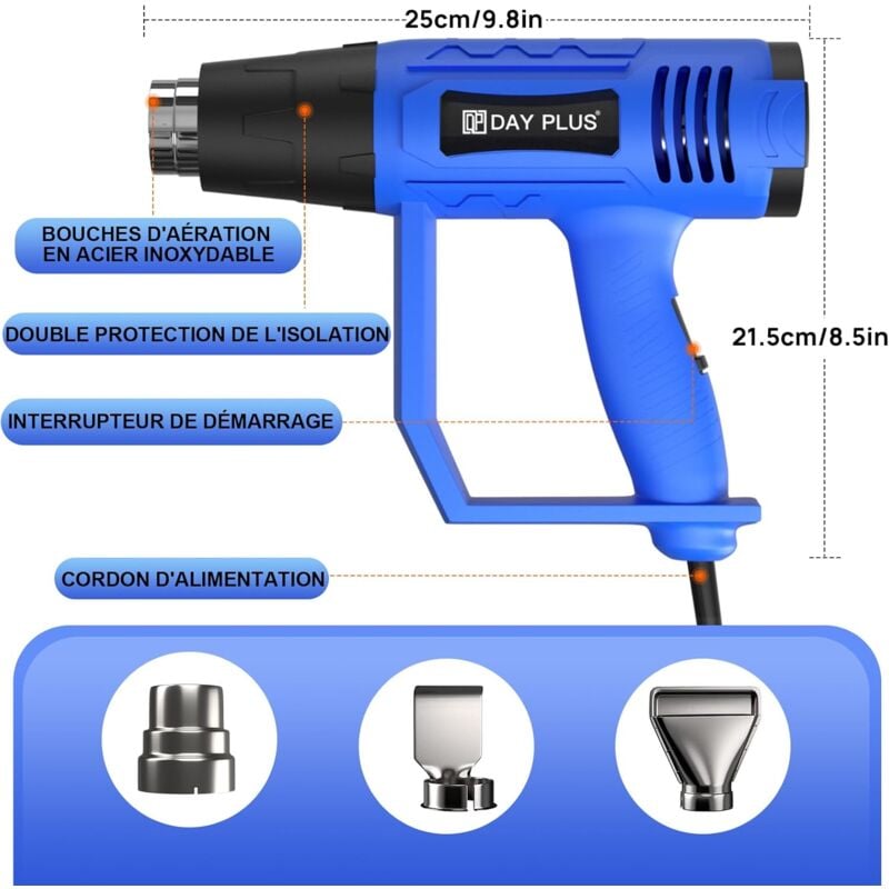 2000W Heißluftpistole Profi - 300-600°C Mit 3 Düsen Für Schrumpfen, Lack Entfernen