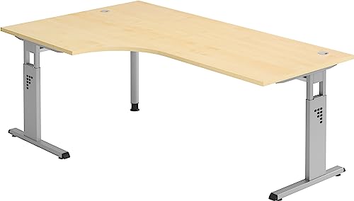 Endlich mehr Platz zum Arbeiten! Der bümö Eckschreibtisch in praktischer L-Form bietet dir satte 200x120 cm Arbeitsfläche in schicker Buche-Optik. Die ergonomische Höhe beugt Rückenproblemen vor, und der integrierte Kabelkanal hält lästige Kabel ordentlich versteckt. Die stabile Metallkonstruktion mit verstellbaren Tischbeinen steht auch auf unebenen Böden sicher. Besonders praktisch: Die Melaminharz-Oberfläche ist super kratzfest und lässt sich easy mit einem feuchten Tuch reinigen. Ob als PC-Tisch, Arbeitsplatz oder Homeoffice-Lösung - dieser Tisch macht einfach alles mit. Die vormontierten Elemente erleichtern den Aufbau, und die Lieferung erfolgt bis zur Bordsteinkante. Mit verschiedenen Größen und Dekoren findest du garantiert den passenden Tisch für dein Büro. Modern, funktional und mega stabil - was will man mehr?