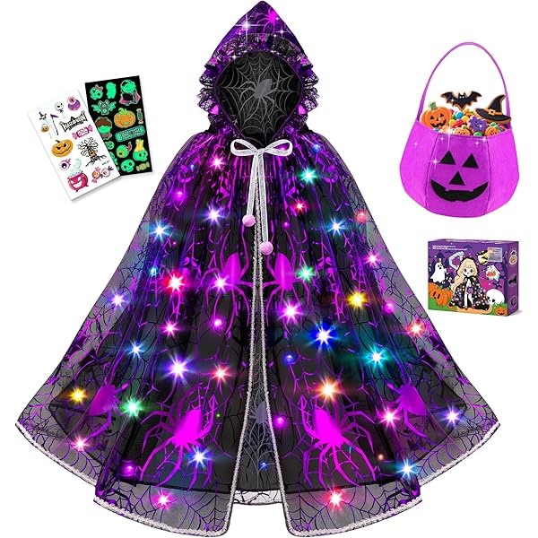 Magisches Hexen Kostüm Für Mädchen - Leuchtendes Halloween Outfit Mit Hut & Zauberstab