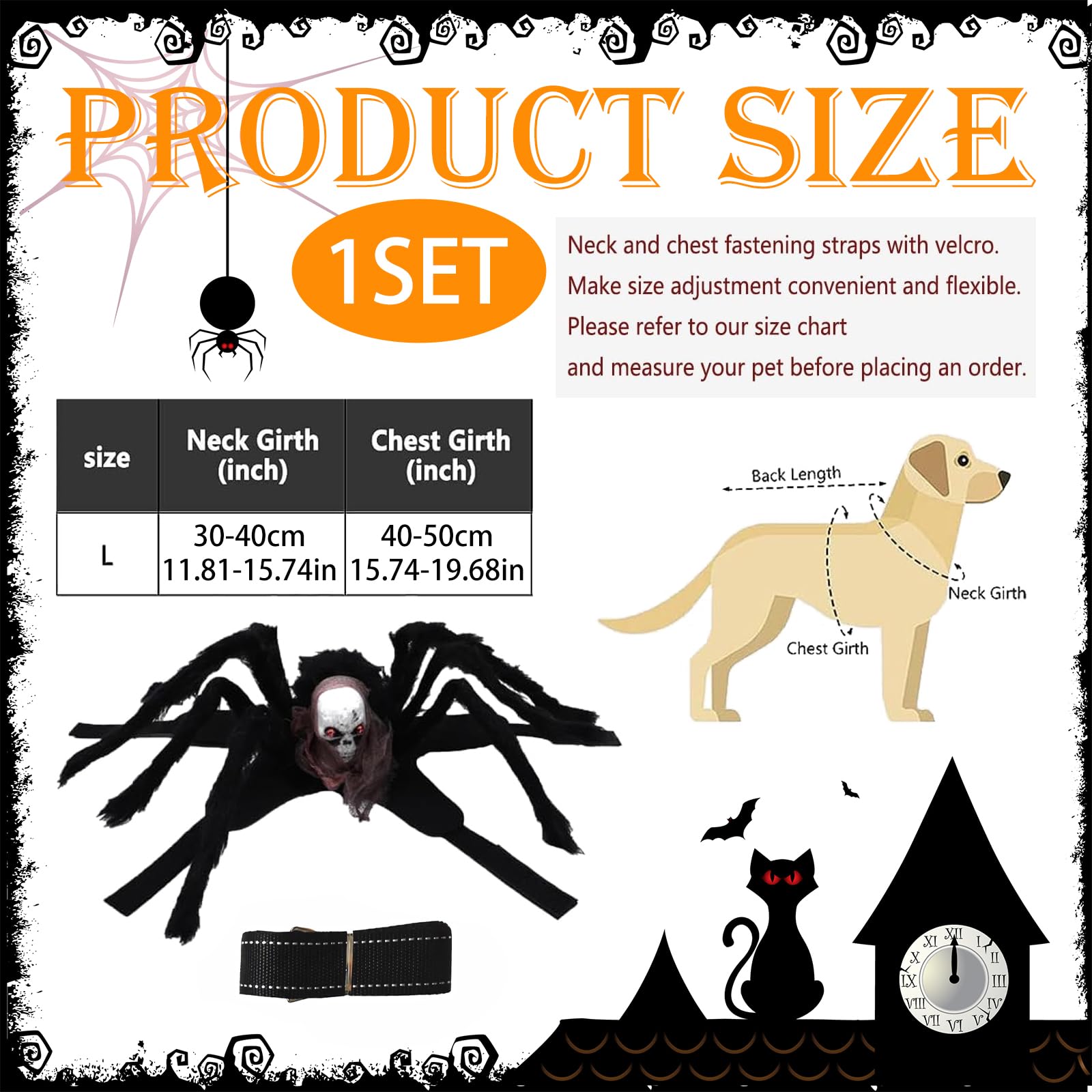 Dein Hund wird zur gruseligen Spinne! Dieses lustige Halloween-Kostüm ist der absolute Hit auf jeder Party. Mit verstellbaren Verschlüssen an Hals und Brust passt es perfekt für kleine bis mittelgroße Hunde. Aus hautfreundlichem Filz gefertigt, ist es super weich und verursacht keine Reizungen. Die detaillierten, pelzigen Beinen sehen täuschend echt aus und sorgen für jede Menge Aufmerksamkeit. Perfekt für Halloween-Partys, Karneval oder lustige Fotosessions. Dein Vierbeiner wird zum Star der Veranstaltung - und das ganz ohne dass er sich unwohl fühlt. Einfach anziehen, verschließen und schon ist dein Hund bereit für den großen Gruselspaß!