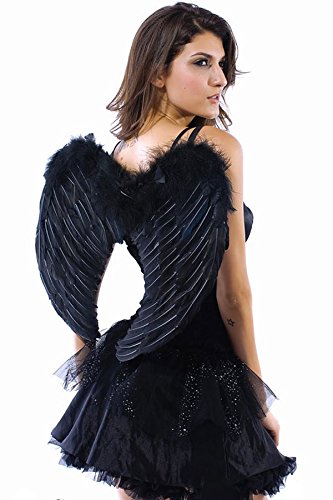 Verwandle dich in einen dunklen Engel! Dieses dreiteilige Set besteht aus einem verführerischen Kleid, einer Unterbrustcorsage und echten Flügeln mit Federn. Das Kleid (ca. 74cm lang) hat einen vierlagigen Rock mit glitzernder Oberlage - einfach umwerfend! Die Cups sind leicht gepolstert, die Träger verstellbar. Die Corsage schließt mit Reißverschluss. Die Flügel mit echten Federn machen das Ensemble komplett. Passt in Größe S/M (34-38) oder L/XL (40-42). Perfekt für Halloween, Karneval, Mottopartys oder als Gogo-Tänzerin. Für mehr Bedeckung einfach mit einer Leggings kombinieren. Aus 100% Polyester - pflegeleicht und formstabil. Werde zur unvergesslichen Erscheinung auf jeder Party! Einfach anziehen und die Blicke werden dir gehören - ob auf der Halloween-Party oder beim Karnevalsumzug.