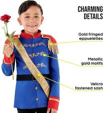 Achtung, der Prinz kommt! Dieses komplette Märchenprinz-Kostüm verwandelt deinen Jungen in einen echten Königsohn. Mit goldbestickter Jacke, Hose, Gürtel, Krone und Zepter - alles dabei für den großen Auftritt. Aus weichem Polyester, angenehm auf der Haut und atmungsaktiv. Perfekt für Halloween, Karneval, Kindergeburtstage oder Theateraufführungen. Von 3 bis 12 Jahren in verschiedenen Größen erhältlich. Dein kleiner Prinz wird begeistert sein, wenn er in diesem aufwändigen Kostüm seine Prinzessin retten kann! Macht jedes Fest zu einem märchenhaften Erlebnis.