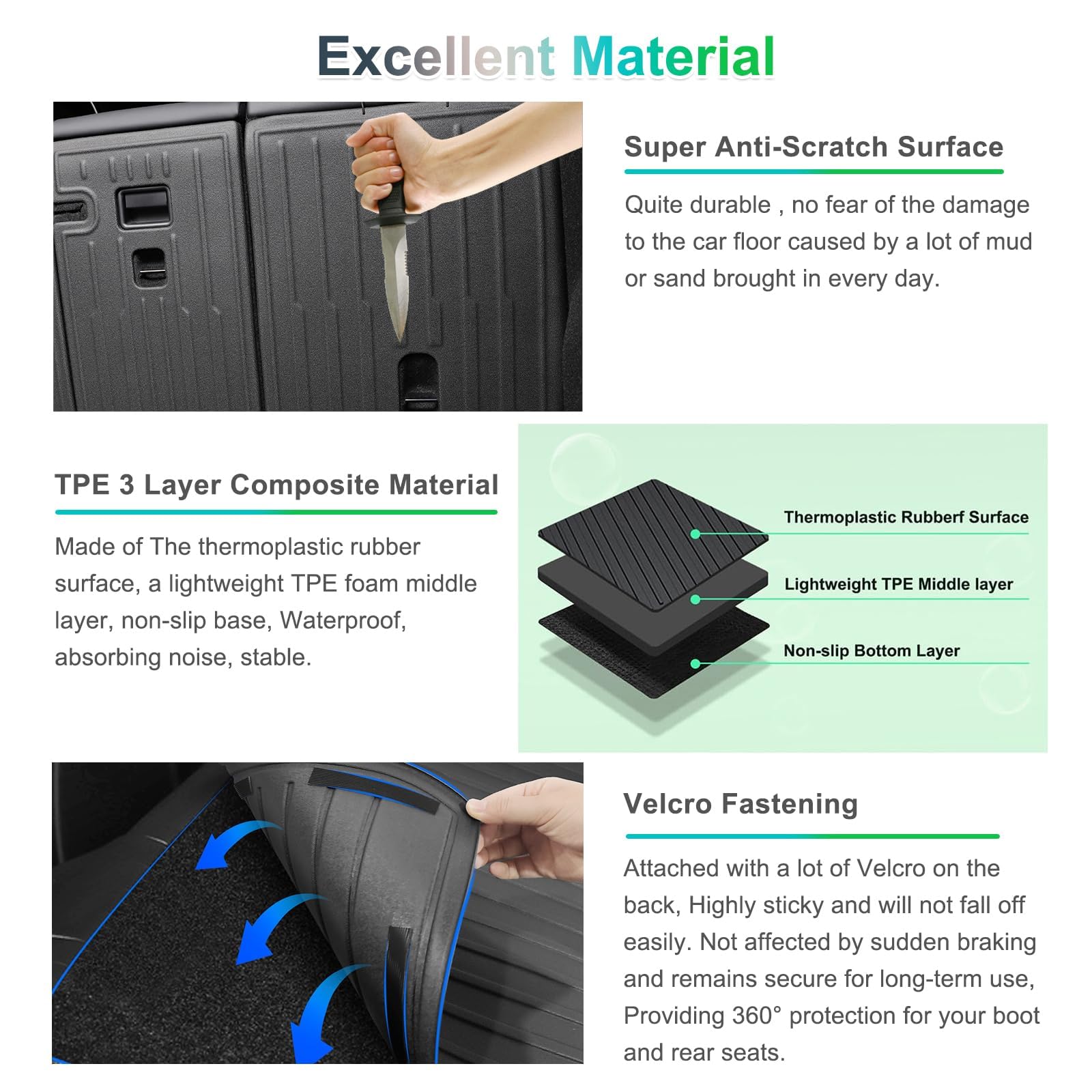 GAFAT Tesla Model Y 2025 Fußmatten Set - 9-teilige TPE Allwetter Matten Für Juniper Modelle
