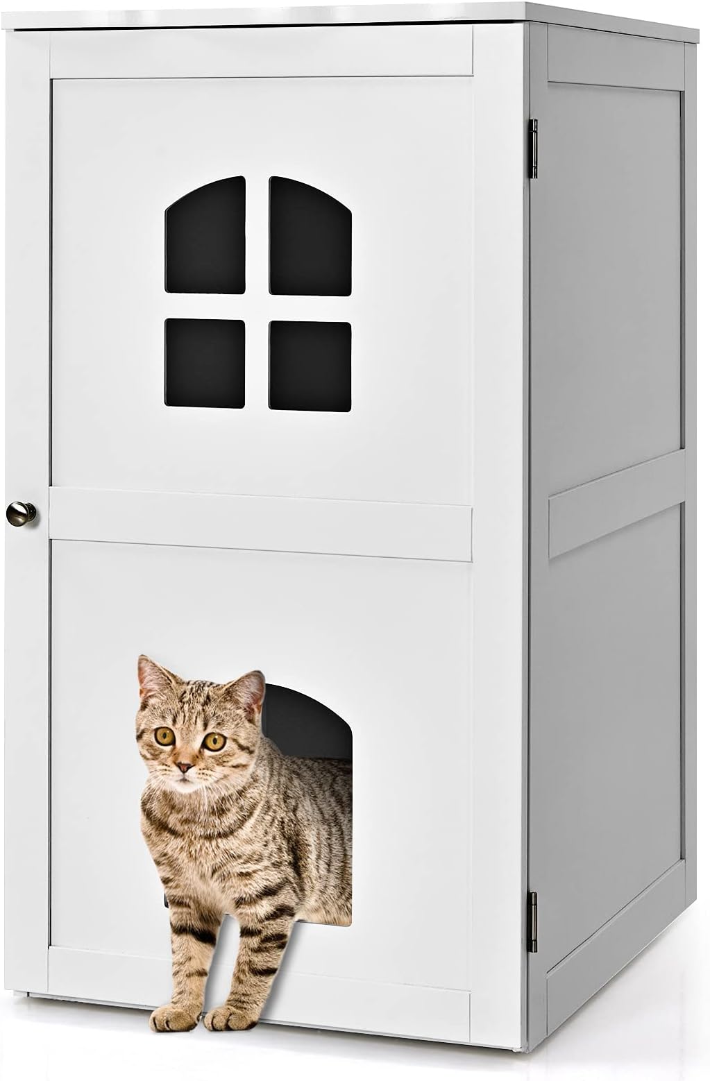 Katzenschrank Mit Sandkasten & Regalen - Weißer Katzenklo-Versteck 132cm Mit Magnet-Türen