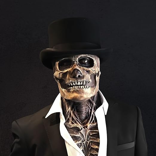 Grusele deine Freunde zu Tode! Diese ultra-realistische Totenkopfmaske aus Naturlatex ist der absolute Hit für jede Halloween-Party. Der bewegliche Kiefer lässt dich wie ein echtes Skelett sprechen - einfach genial! Mit 22x30x23 cm und für Kopfumfang 60-64 cm passt sie den meisten Erwachsenen. Die dunklen Augenringe verbergen deine Identität, bieten aber trotzdem klare Sicht. Aus weichem, elastischem Latex gefertigt, sitzt sie bequem und passt sich deinem Gesicht an. Perfekt für Kostümpartys, Karneval, Horror-Events oder thematische Fotoshootings. Der innere Schwammblock sorgt für zusätzlichen Komfort. Einfach überziehen und schon verwandelst du dich in die gruseligste Kreatur der Party! Achtung: Leichter Latexgeruch ist normal - einfach vor dem ersten Tragen lüften oder waschen. Bereit für den Gruselspaß?