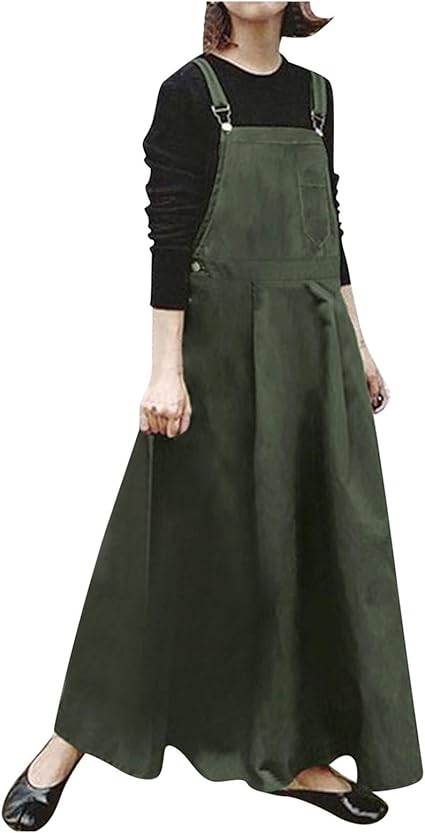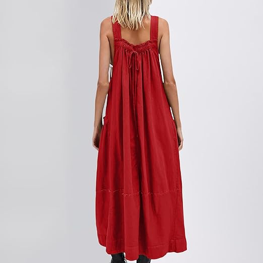 Latzkleid Damen Lang Mit Taschen - Ärmelloses Sommerkleid Mit Verstellbaren Trägern