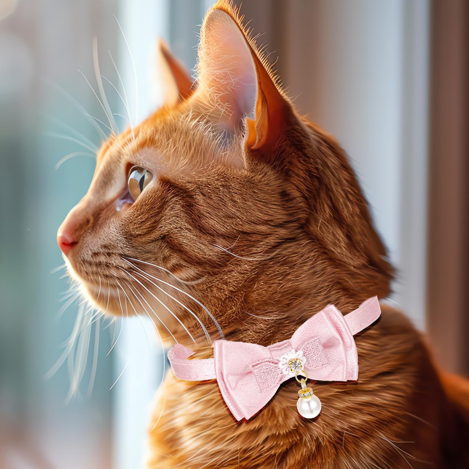 2 Stück Katzenhalsbänder Mit Schleife - Verstellbar & Abnehmbar Rosa