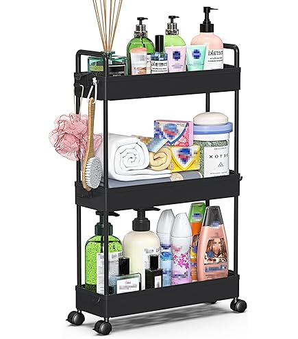 VickyHome Rollwagen - 4-stöckiges Regal Auf Rädern | Mit Haken & Höhenverstellbaren Ebenen
