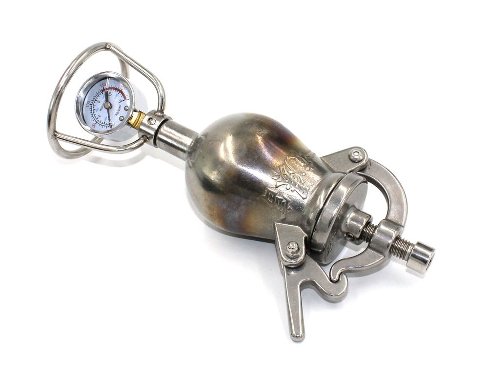 Aus Edelstahl 304 - langlebig und gesund. Kapazität: 200ml. Mit Manometer zur Druckkontrolle (bis 0.9).