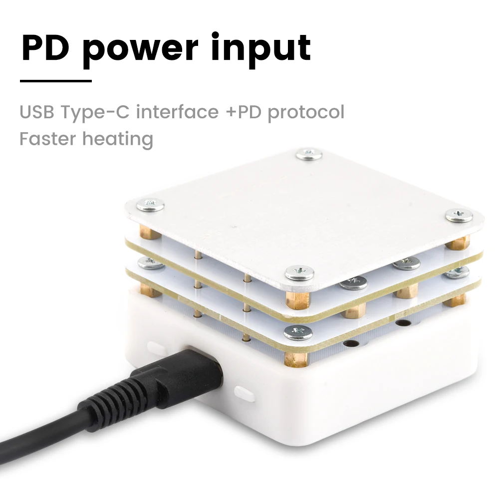 Professionelle Vorheizstation für alle Elektronik-Bastler und Reparatur-Profis! Heizfläche: 55x55mm, Temperaturbereich 50°C-280°C (122°F-536°F). Mit klarem OLED-Display (128x32) das alle Daten anzeigt. Unterstützt PD, QC und DC Stromversorgung bis 25V. Besonderheiten: Zeitgesteuerte Heizung, automatische Abschaltung, Temperaturkompensation und Sprachauswahl (Deutsch, Englisch, Russisch). Perfekt für SMD-Lötarbeiten, LED-Lampenreparatur und PCB-Arbeiten. Der hitzebeständige Keramiksensor sorgt für präzise Temperaturmessung. Mit Summer für Betriebszustands-Hinweise. Macht jede Elektronik-Reparatur einfacher und professioneller! Einfach einstellen und loslegen.
