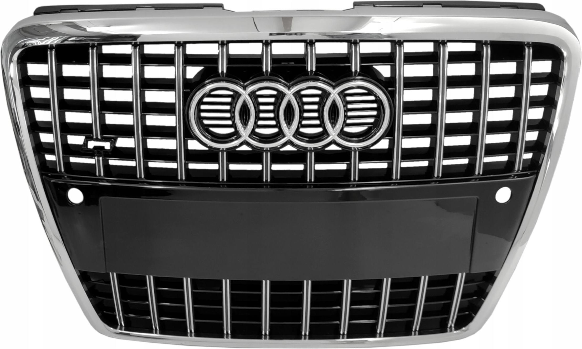 Passgenaue Stoßstangengitter für deinen Audi A8 D3 nach dem 2. Facelift (Baujahr 2008-2010). Komplettset mit 2 Teilen - links und rechts. In glänzendem Schwarz mit Chromrahmen an den Beleuchtungsöffnungen. Entspricht den OE-Nummern 4E0807679B und 4E0807680B. Einfache Montage, robuste Verarbeitung für dauerhafte Nutzung. Wichtig: Vor dem Kauf unbedingt die OE-Nummern mit deinen Originalteilen vergleichen - schon ein Zeichen Unterschied kann bedeuten dass es nicht passt! Macht deinen A8 wieder komplett - ob nach Unfallschaden oder einfach zum Aufwerten des Looks.