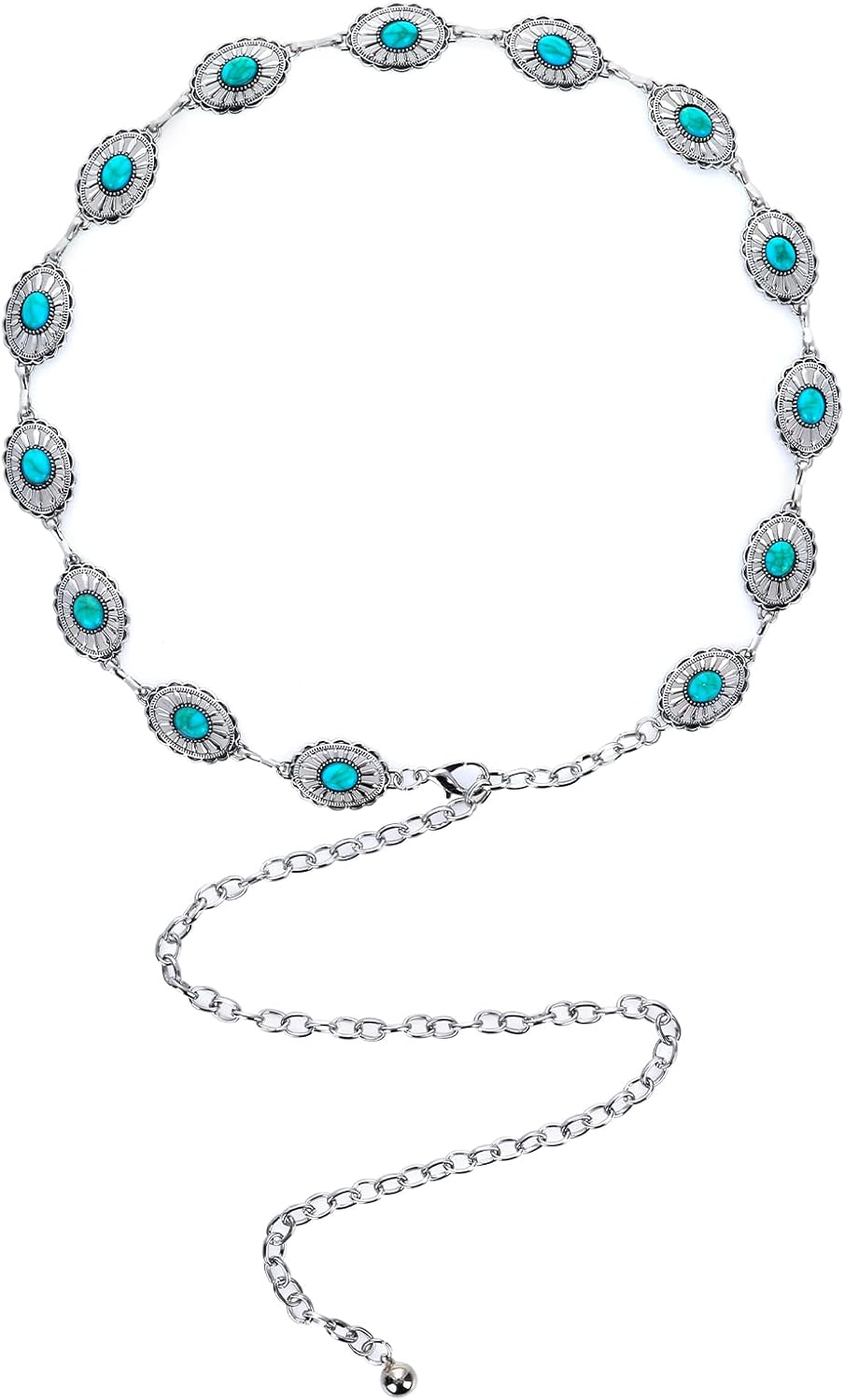Western Gürtel Damen Mit Concho - Türkiser Kettengürtel Im Bohemian Style