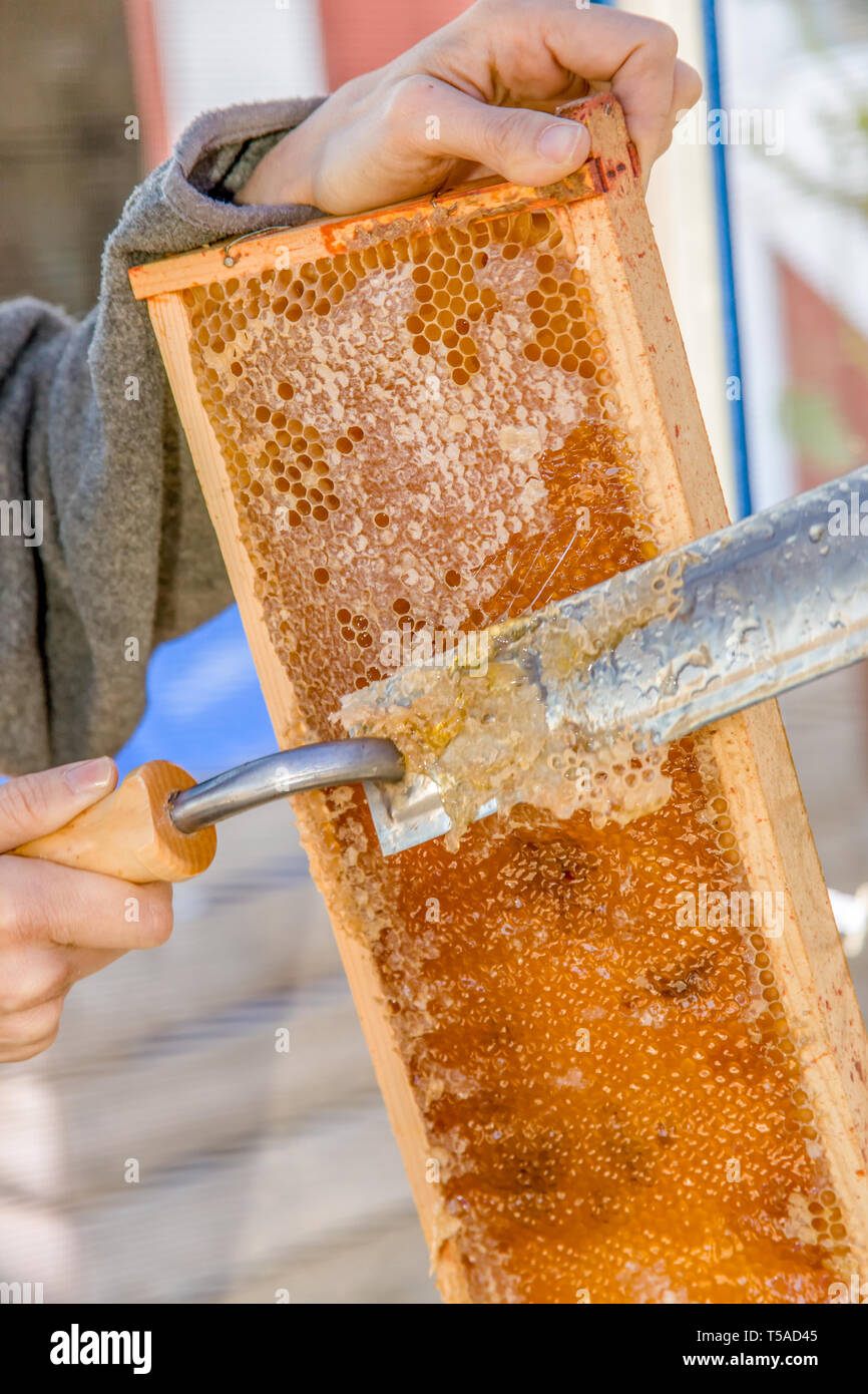 Perfekt für die Honigernte! Dieses elektrische Heißmesser von Garosa macht das Entdeckeln der Waben super einfach. Aus Edelstahl, 44,5 cm lang mit 24,8 cm Klinge. Heizt sich auf 150-160°C auf, 220W Leistung. Der Holzgriff liegt gut in der Hand und verrutscht nicht. Schont den Honig und ist hygienisch - ideal für Hobby-Imker und Profis. Einfach anstecken, aufheizen lassen und schon geht's los. Damit wird die Honigernte zum Kinderspiel!