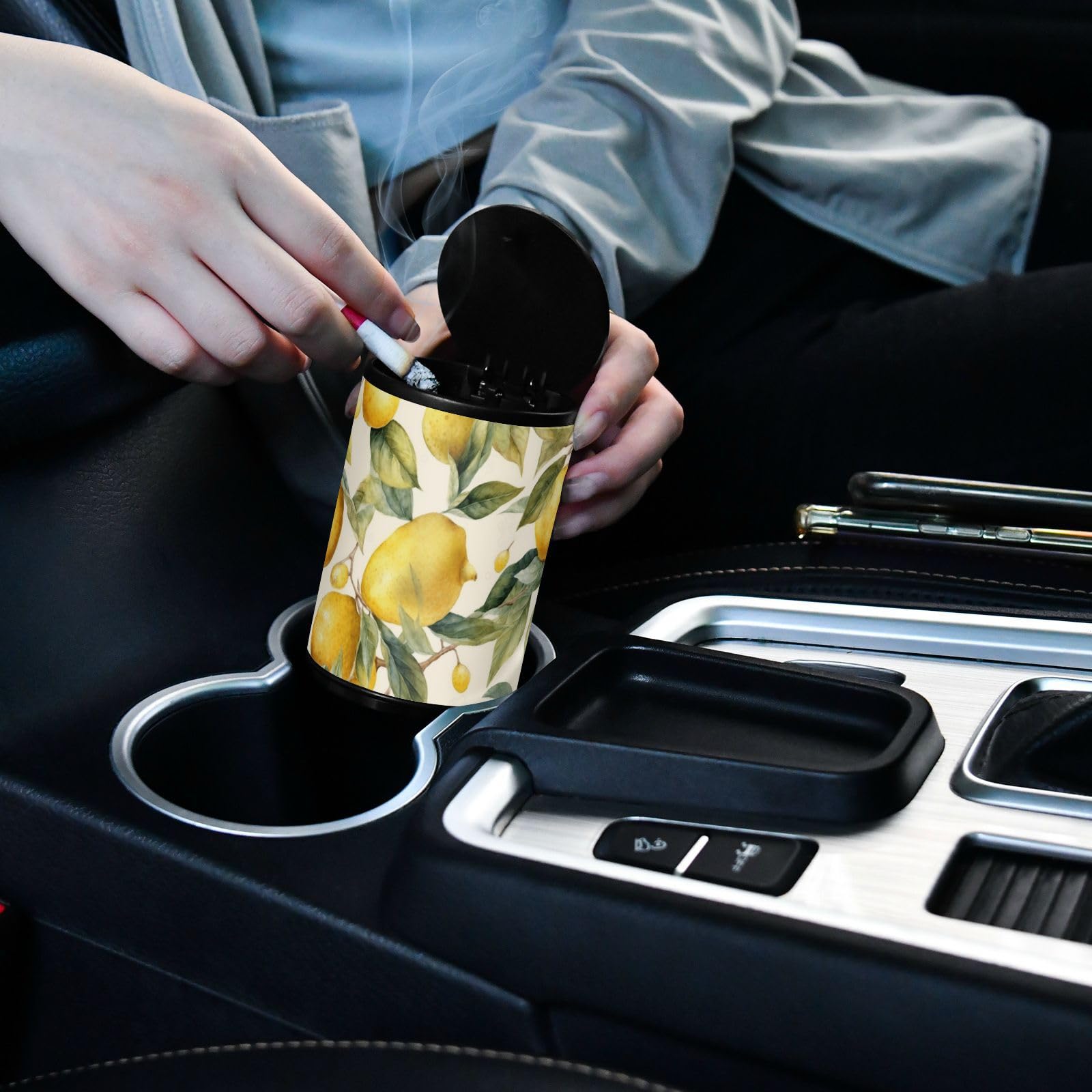 Aschenbecher Auto Mit Deckel Edelstahl - Gelb Grün Zitrone Muster Outdoor