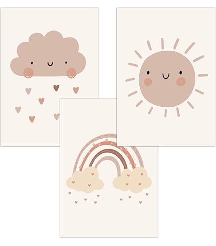 Oh, wie niedlich! Dieses 3er-Set Wandbilder von Herfair verwandelt jedes Kinderzimmer in eine gemütliche Wohlfühloase. Die liebevoll illustrierten Tiermotive im angesagten Boho-Stil sind ein absoluter Hingucker an der Wand. Erhältlich in verschiedenen Größen von DIN A4 bis 50x70cm - da findet sich für jedes Zimmer die passende Größe. Gedruckt mit hochwertiger Drucktechnologie auf robustem Leinwandmaterial, das viel langlebiger ist als normales Papier und sogar wasserfest. Perfekt als Geschenk zur Geburt, Taufe oder zum Geburtstag - für Jungen und Mädchen gleichermaßen geeignet. Die süßen Motive regen nicht nur die Fantasie der Kleinen an, sondern fördern auch spielerisch die Kreativität. Einfach aufhängen und schon strahlt das Kinderzimmer pure Gemütlichkeit aus!