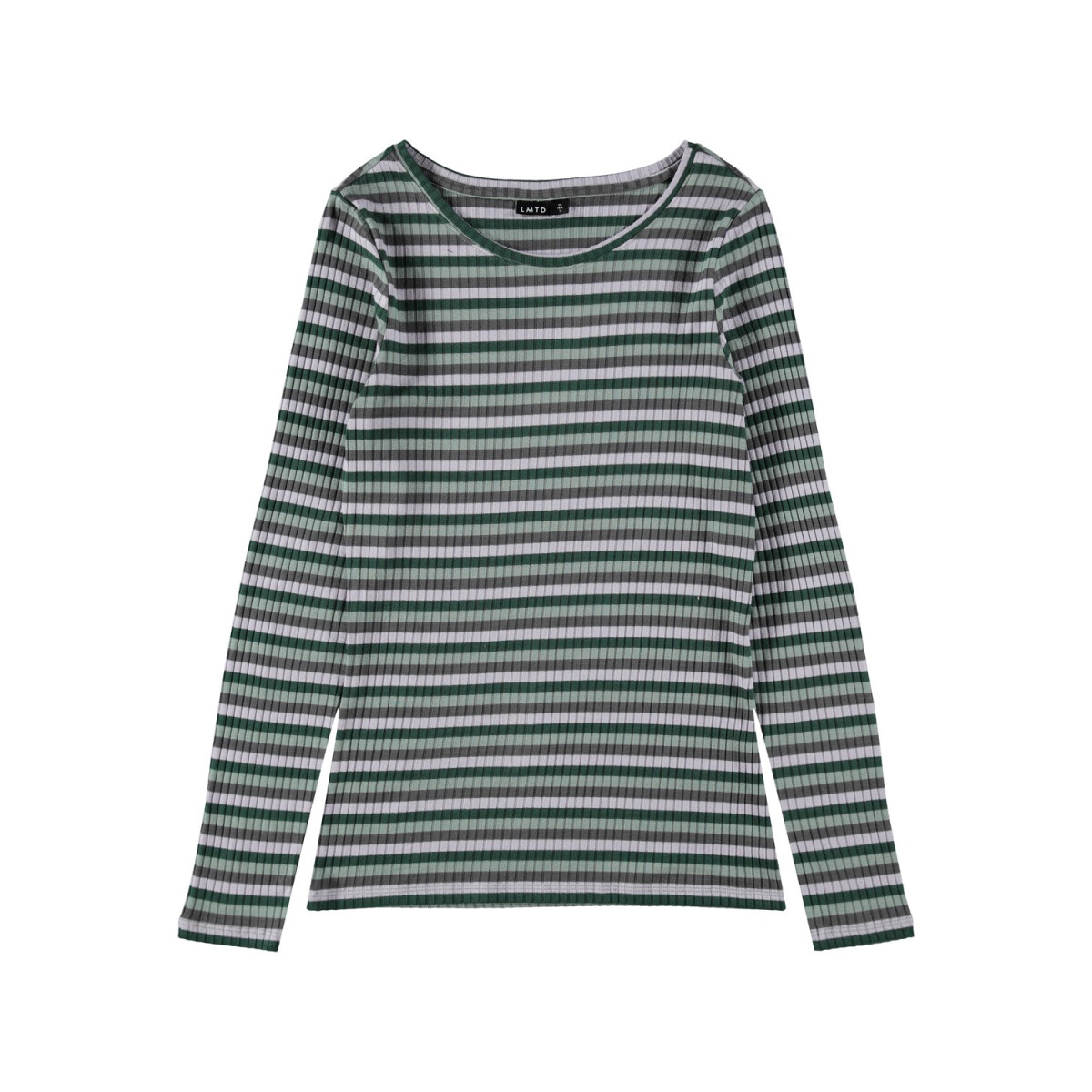 Damen Langarmshirt Rosa-grün Gestreift - Lässiges Oberteil Mit Taschen