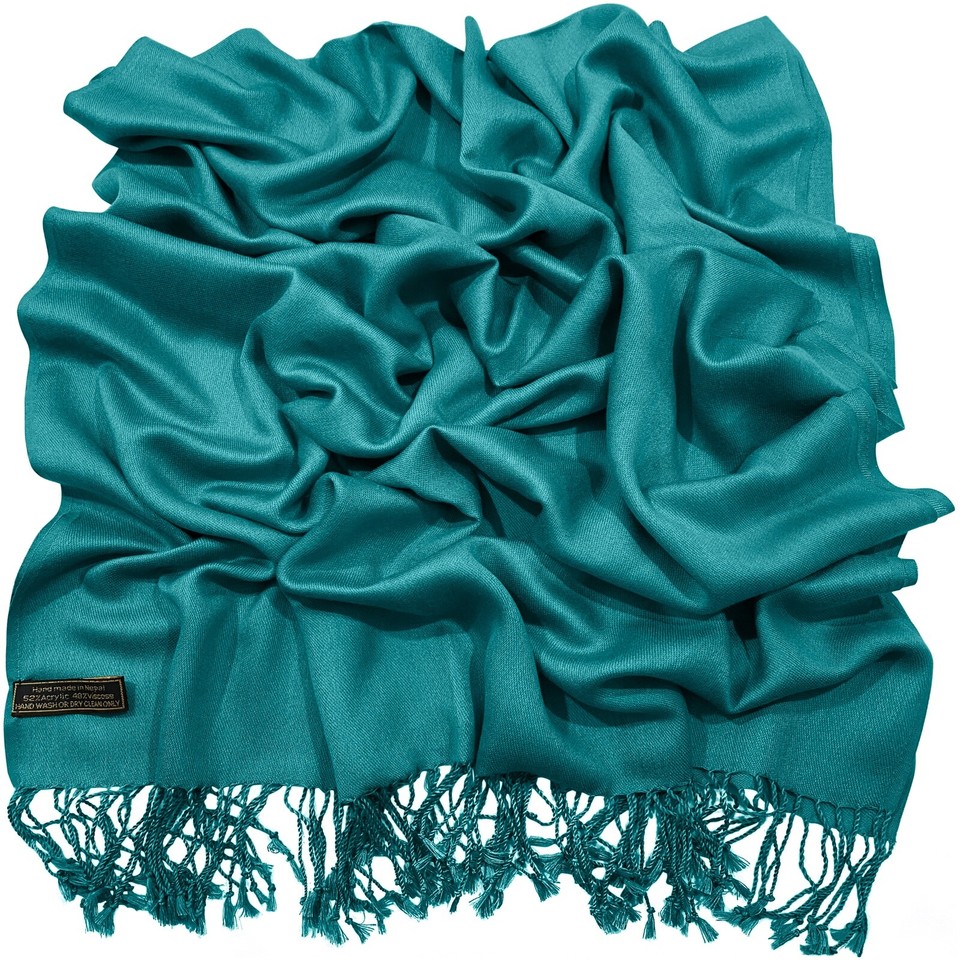 CJ Apparel Schal In Teal Grün Mit Fransen - Weicher Pashmina Für Kalte Tage