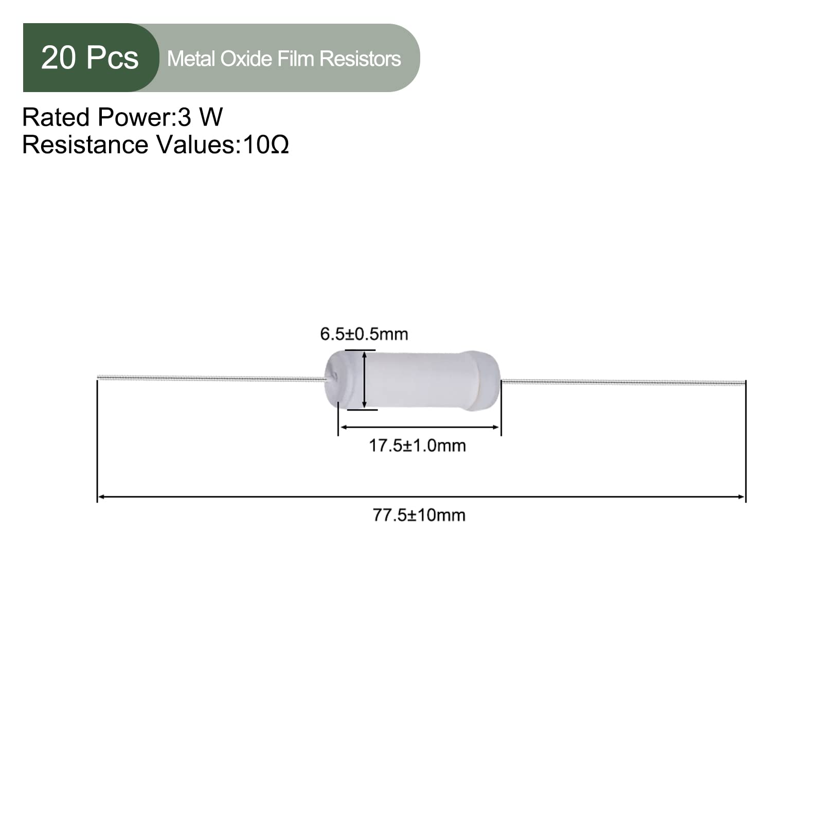 Perfekte Widerstände für deine Elektronik-Projekte! Dieses Set enthält 20 hochwertige Metalloxid-Widerstände mit 3W Leistung und 22 Ohm Widerstandswert. Mit einer Toleranz von nur 5% für präzise Ergebnisse. Die Widerstände halten Temperaturen von -55°C bis +155°C stand und sind damit extrem robust. Besonders geeignet für die Energietechnik und Anwendungen mit hohen Temperaturen. Mit Achsenanschluss für einfache Montage auf Platinen. Technische Daten: 350V Nennspannung, 750V maximale Pulsspannung, Gesamtlänge 77,5mm. Ideal für Hobby-Elektroniker, Techniker und alle, die gerne basteln. Einfach bestellen und sofort mit deinem nächsten Projekt loslegen. Achte bei der Bestellung auf die richtige Leistung und den Widerstandswert für deine Anwendung.