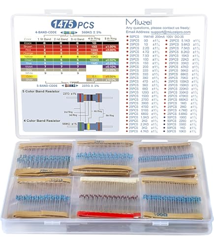 Für alle Elektronik-Begeisterten und Hobby-Bastler! Dieses Set mit 25 hochwertigen Metallfilm-Widerständen von PopesQ ist perfekt für deine Projekte. Jeder Widerstand hat 430 Ohm bei 0,6W und einer Toleranz von nur 1% - das bedeutet höchste Präzision für anspruchsvolle Schaltungen. Mit einem Durchmesser von 2,5mm und 6,8mm Länge sind die Bauteile kompakt und vielseitig einsetzbar. Das Besondere: Du kannst sie auch als 0,25W oder 0,5W Widerstände verwenden, je nachdem was dein Projekt benötigt. Ob Reparatur, Neuentwicklung oder Lehrzwecke - diese Widerstände liefern zuverlässige Performance. Die Metallfilm-Technologie garantiert stabile Werte und lange Lebensdauer. Perfekt für Audioanlagen, Messgeräte, Steuerungen oder alle anderen elektronischen Anwendungen. Mit 25 Stück hast du immer Ersatz parat oder kannst mehrere gleiche Schaltungen aufbauen. Einfach unverzichtbar für jede Werkstatt oder Labor!
