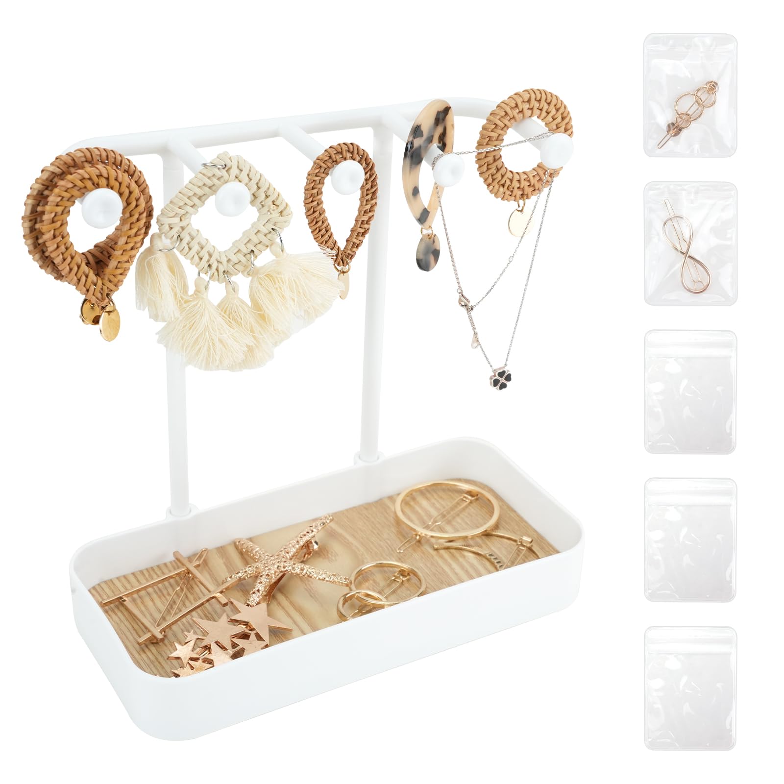 Schluss mit dem Chaos auf dem Schmucktisch! Dieser weiße Emibele-Ständer bringt Ordnung in deine Schätze. 5 Etagen, 18 Haken für Ketten, 46 Löcher für Ohrringe und jede Menge Platz für Ringe, Armbänder und Kleinkram. Endlich alles auf einen Blick!