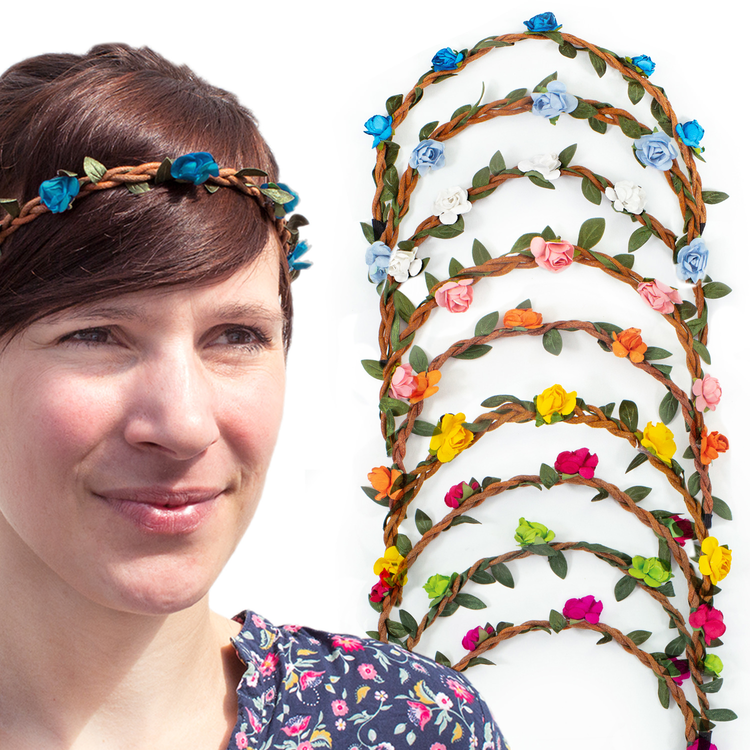 Bohemian Blumenkranz Haarbänder 6er Set - Für Hochzeiten & Feiern In Weiß & Rosa