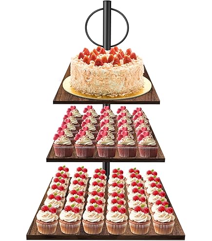 Wow, dieser dreistöckige Tortenständer ist ein echter Hingucker auf jeder Feier! Aus stabilem Holz und Metall gefertigt, bietet er auf drei Ebenen reichlich Platz für deine Torten, Cupcakes und andere Leckereien. Die größte Platte hat 30cm Durchmesser und zwischen den Etagen sind 17,8cm Abstand - da passt alles perfekt rein und ist gut erreichbar. Der Aufbau ist super einfach: In nur 5-10 Minuten steht der Ständer stabil und bereit für deine Köstlichkeiten. Die rutschfesten Bodenpolser sorgen dafür, dass nichts wackelt. Besonders praktisch: Die antihaftbeschichtete Oberfläche ist wasserfest und super leicht zu reinigen - einfach mit einem feuchten Tuch abwischen und schon ist er wieder blitzblank. Perfekt für Geburtstage, Hochzeiten, Nachmittagstee oder einfach wenn Besuch kommt. Damit wird dein Buffet zum absoluten Highlight!