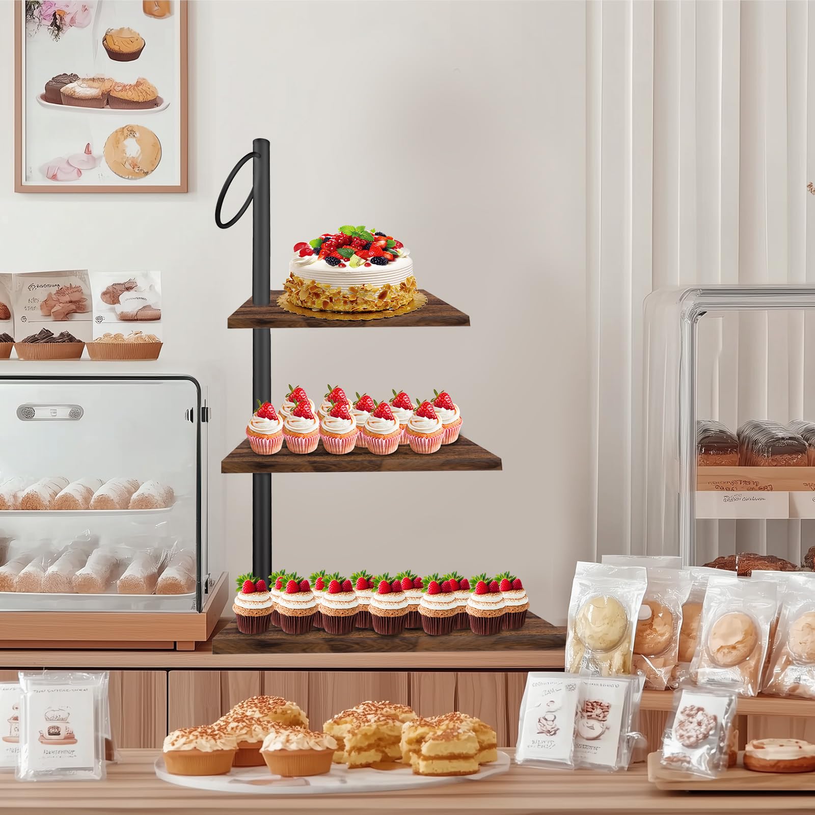 CASDUCT 3-stöckiger Tortenständer Aus Holz - Servierständer Für Kuchen & Cupcakes - 30cm Platten